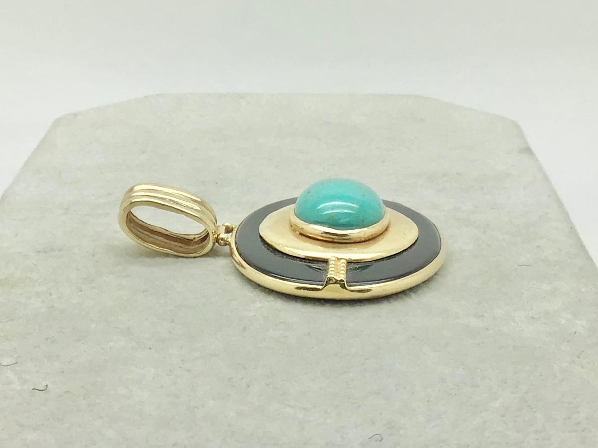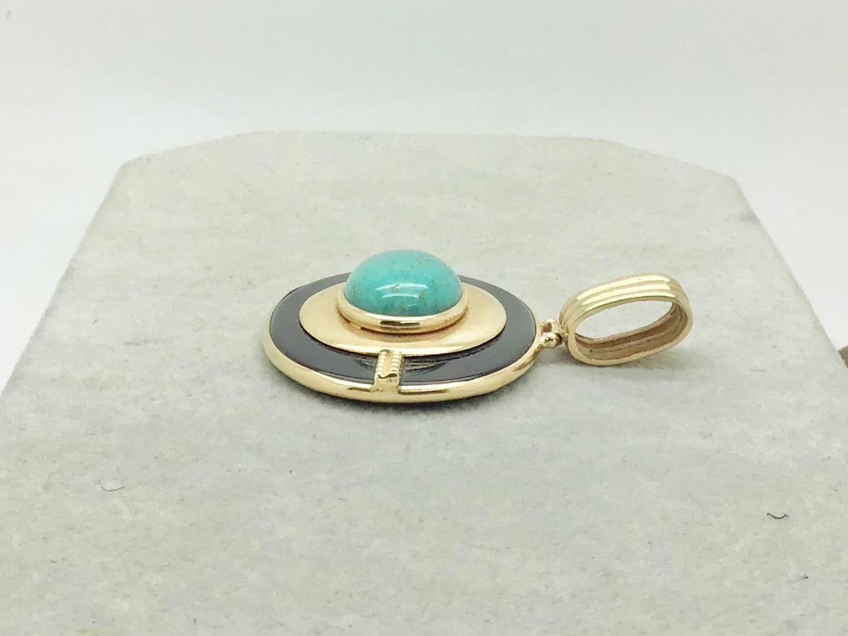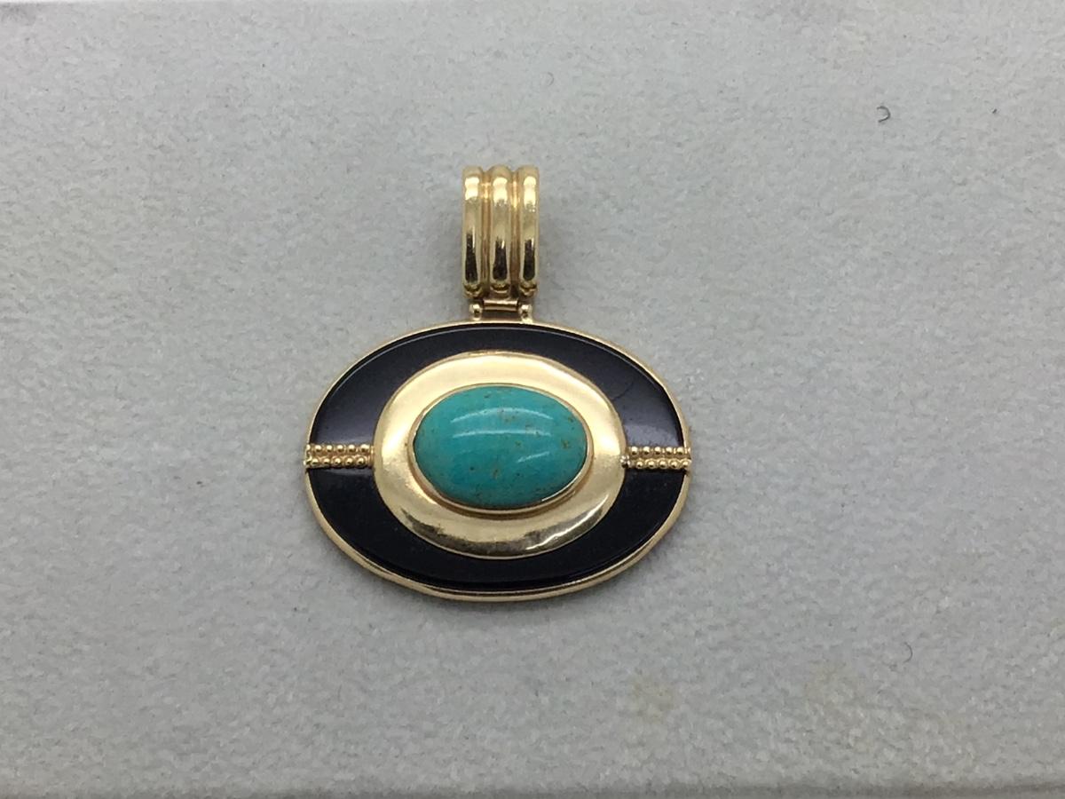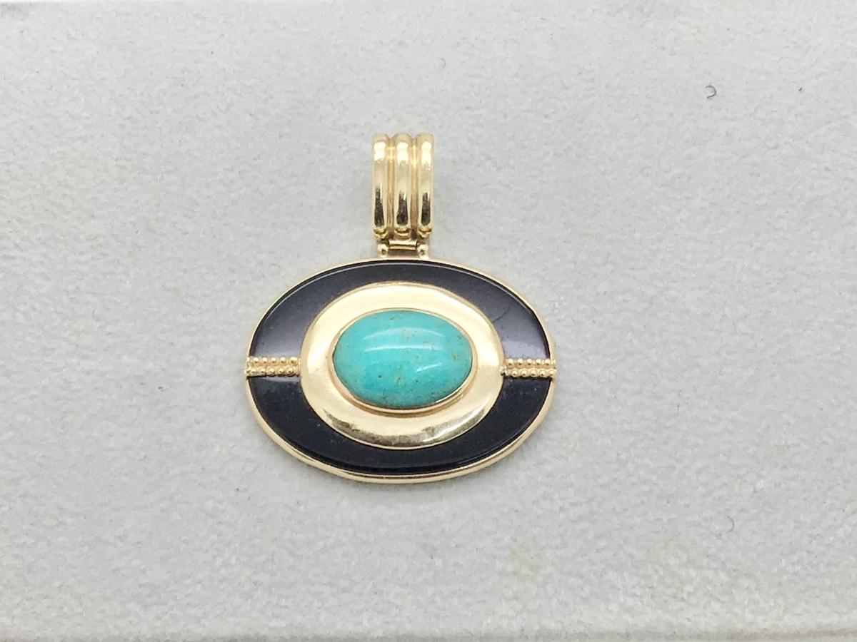 #8301 14K Yellow Gold Turquoise & Onyx Pendant