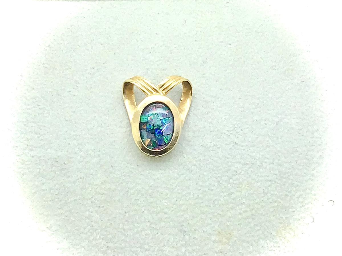 #8303 14K Yellow Gold Australian Opal Pendant/Pearl Enhancer