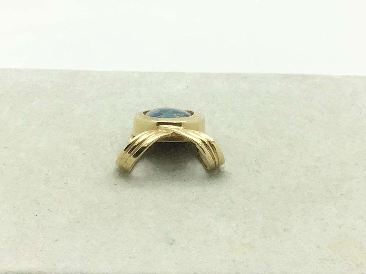 14k yellow gold bow design pendant/pearl enhancer with bezel set 12 x 16mm oval Australian opal. The pendant measures approx 1” long x 7/8” wide and weighs 6.0gr.