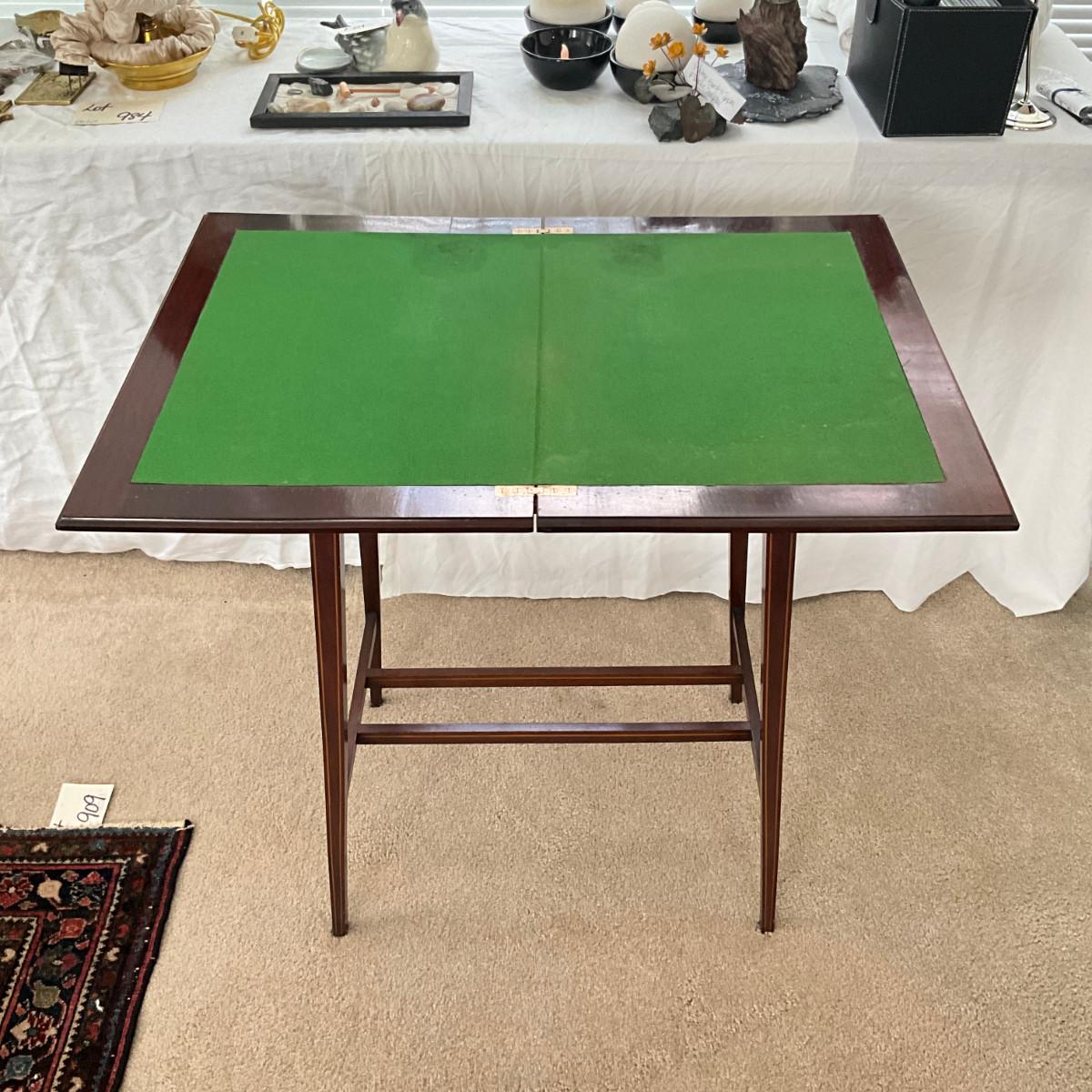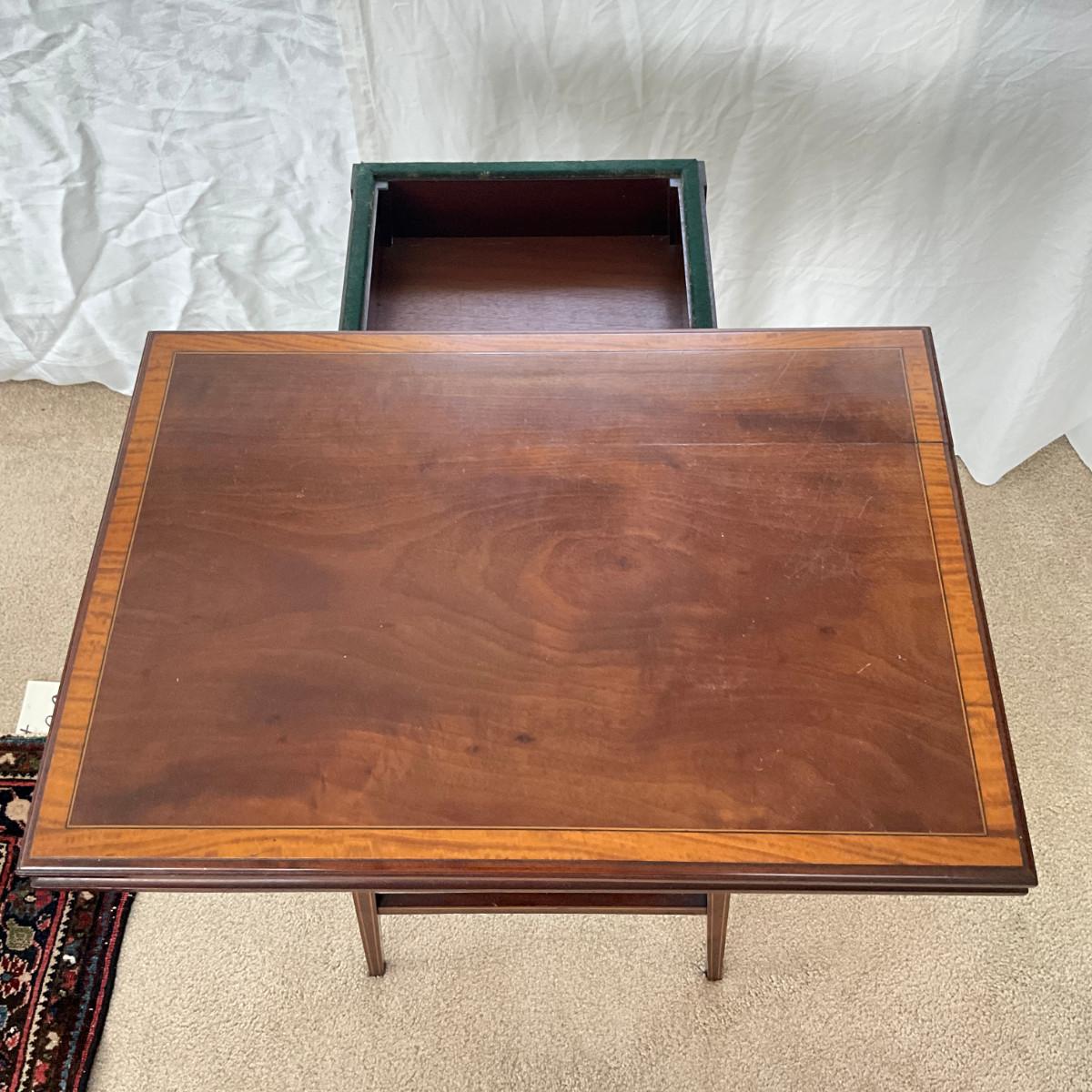 831 Antique Hepplewhite Style Mahogany Side Table With Green Fett