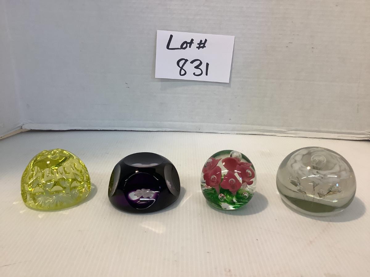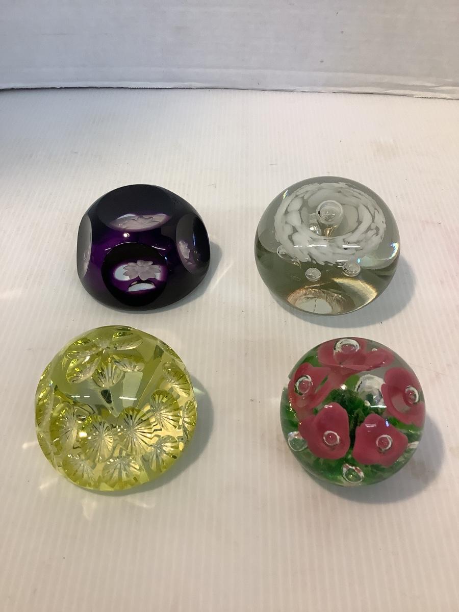 4 Decor Paperweights, 1 is signed by Joe Clair
