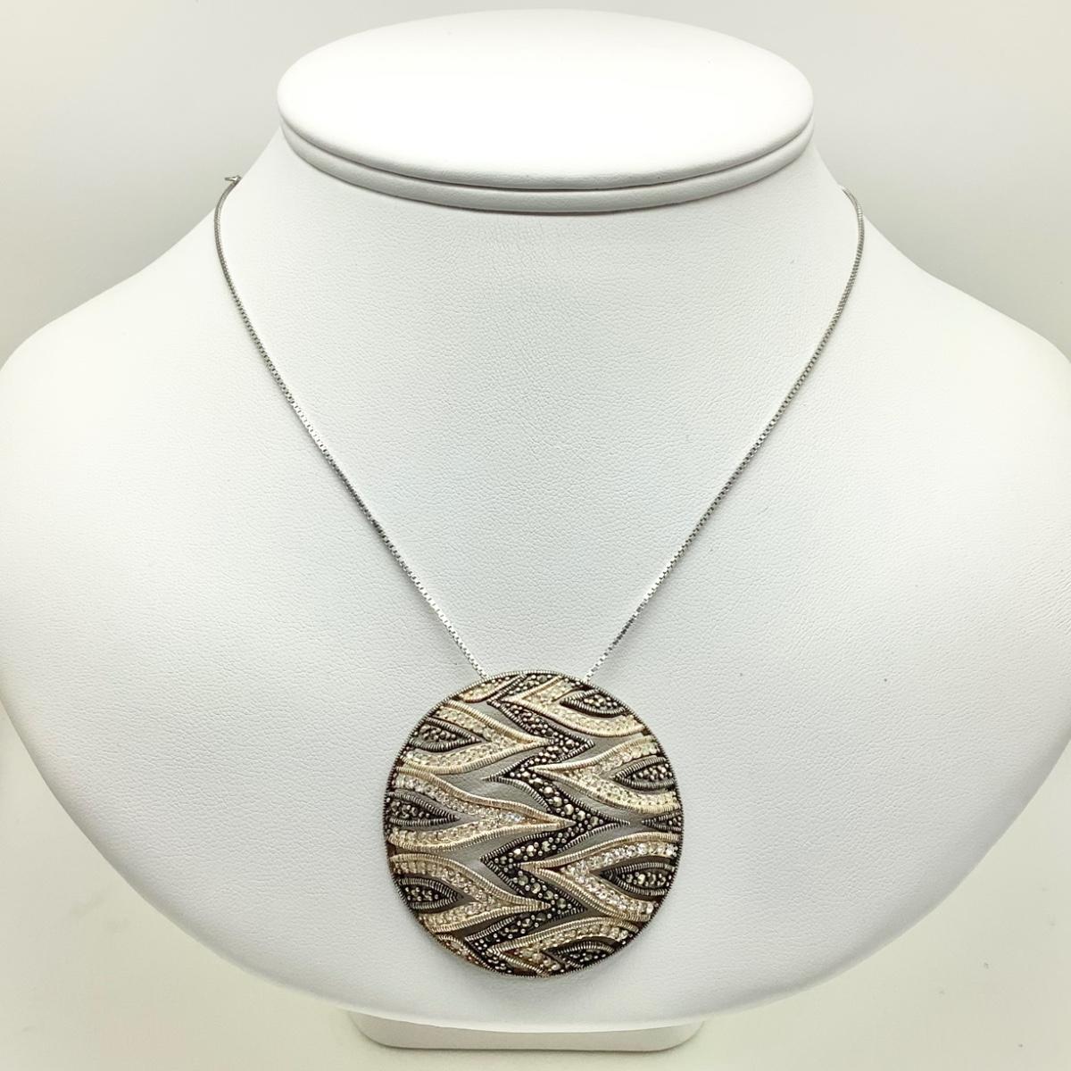 8316 Sterling Silver Large Round Marcasite Pendant with 20" Box Chain