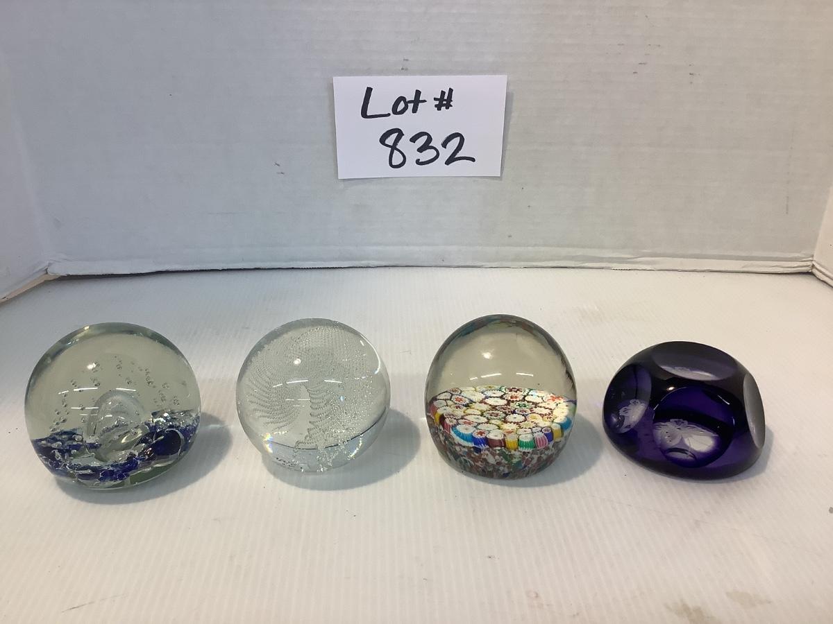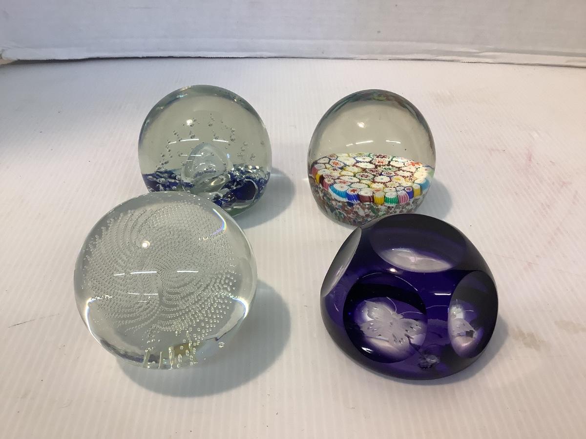 4 Deco Paperweights, 1 is signed by "Josh Simpson 1993"