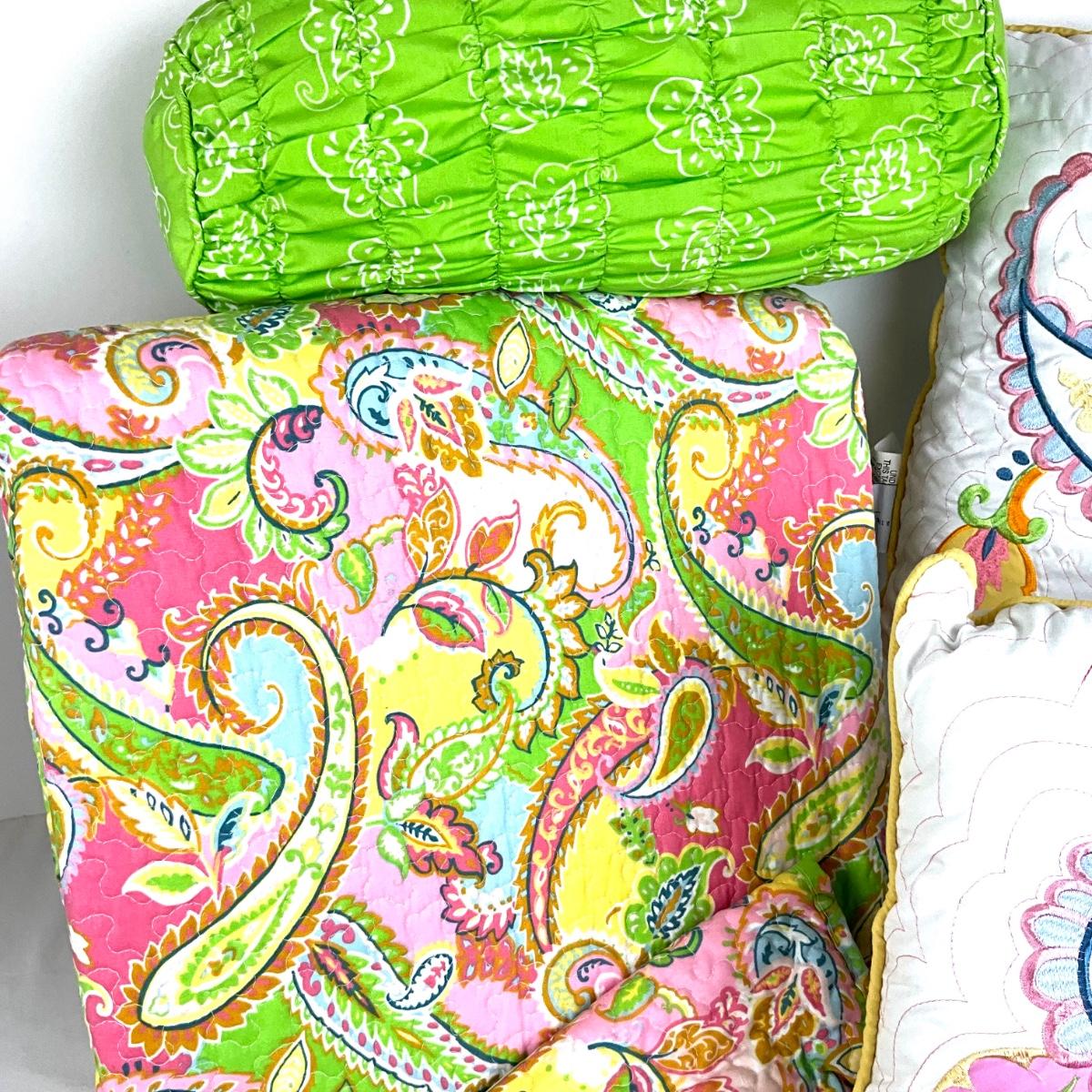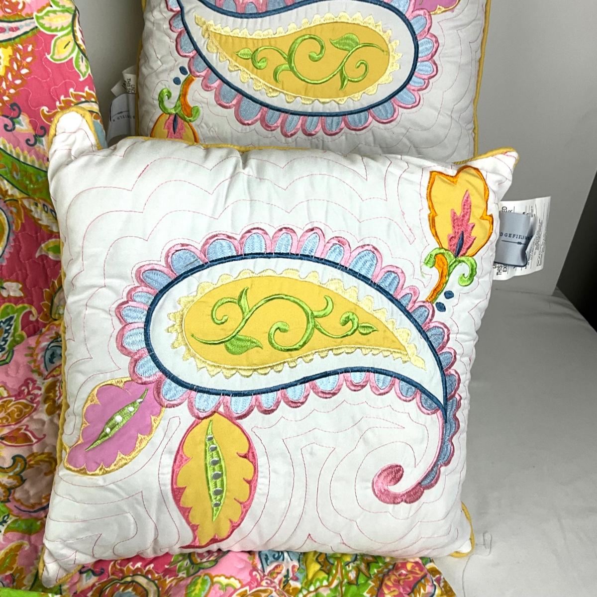full/queen coverlet with bolster, 2 shams, 2 decorative pillows