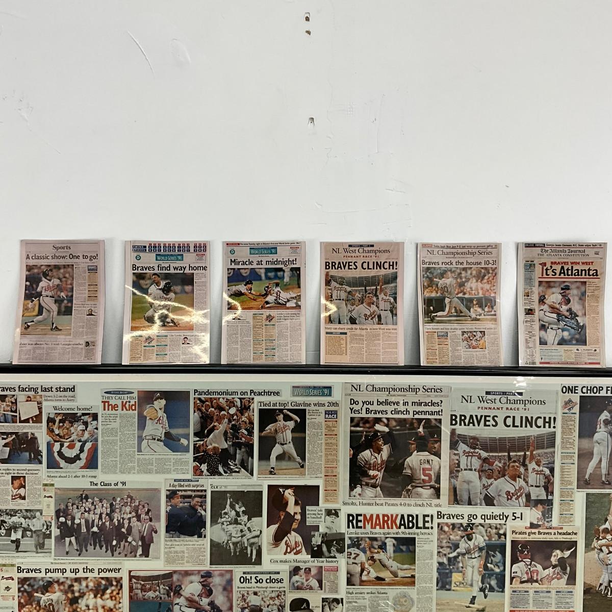 834 1991 Atlanta Braves Newspaper Collage Print With Newspaper Fridge Magnets