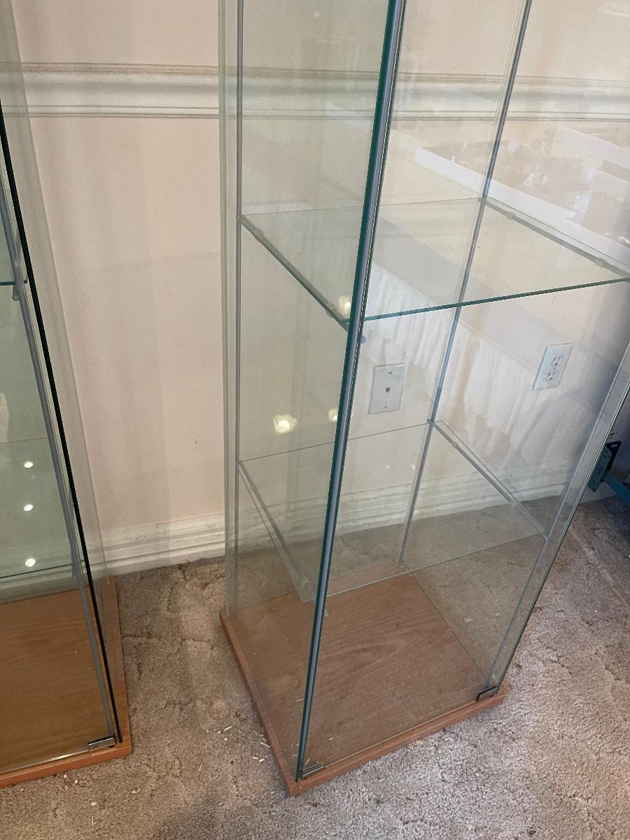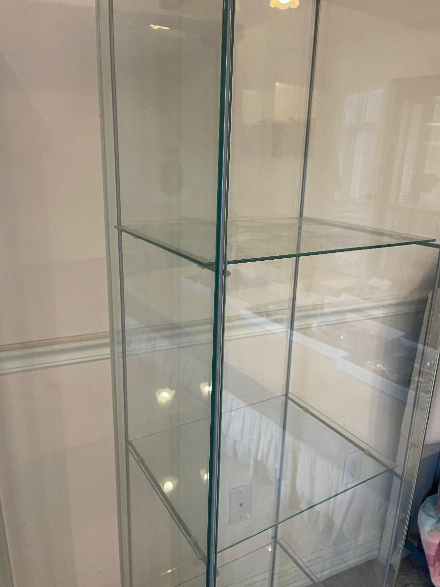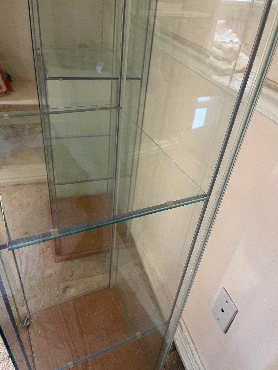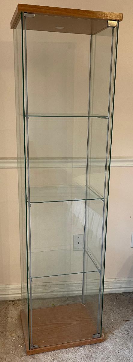 17 x 14 x 64" Tall 3 Glass Shelves Good Condition UPSTAIRS bring Help to move down the Stairs.