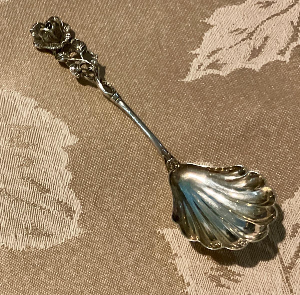 835 silver sugar shell with rose