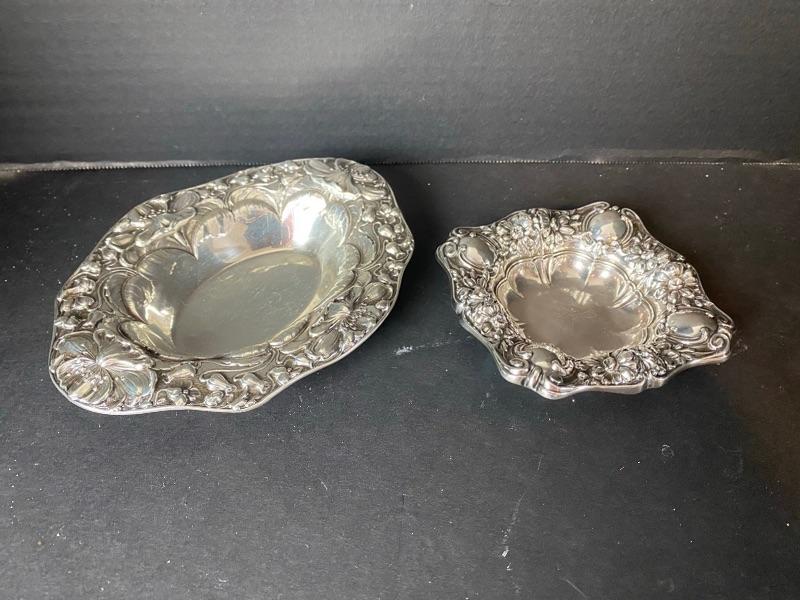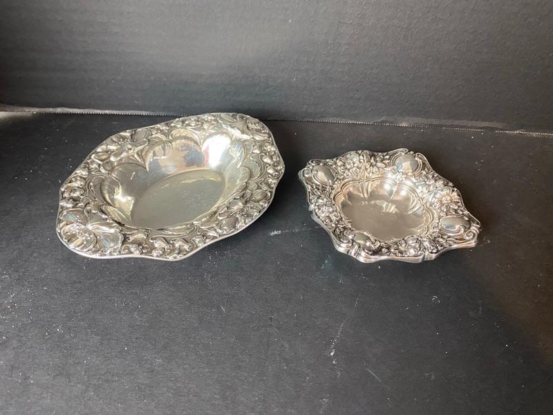 Sterling Ornate Bowls Qty (2)..Large Bowl 7” x 5-1/2”. Small Bowl 4-1/4” x 4-1/4”