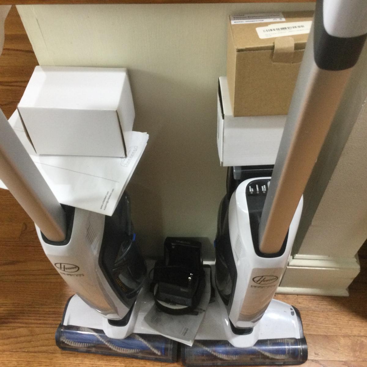 Lot contains: 2 identical vacuum cleaners, both have batteries, there is one battery charger docking station and several new in box filters. One vacuum works perfectly and one works but the brush doesn’t spin.