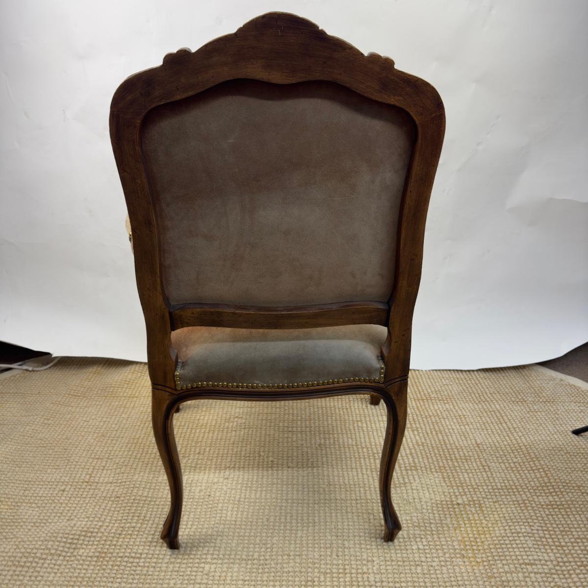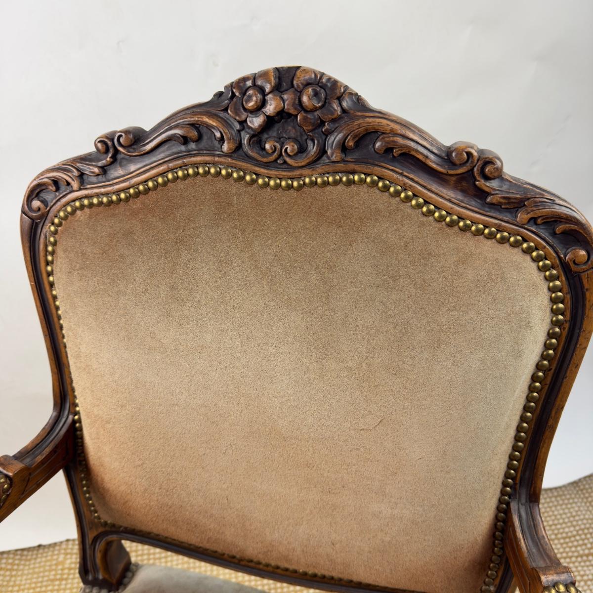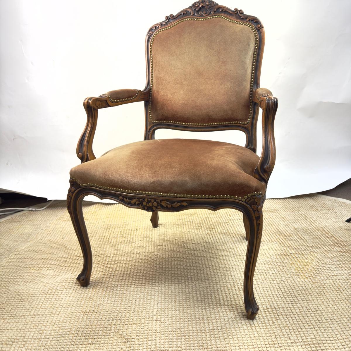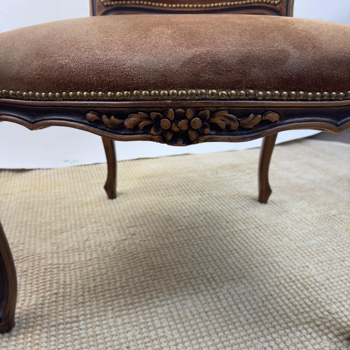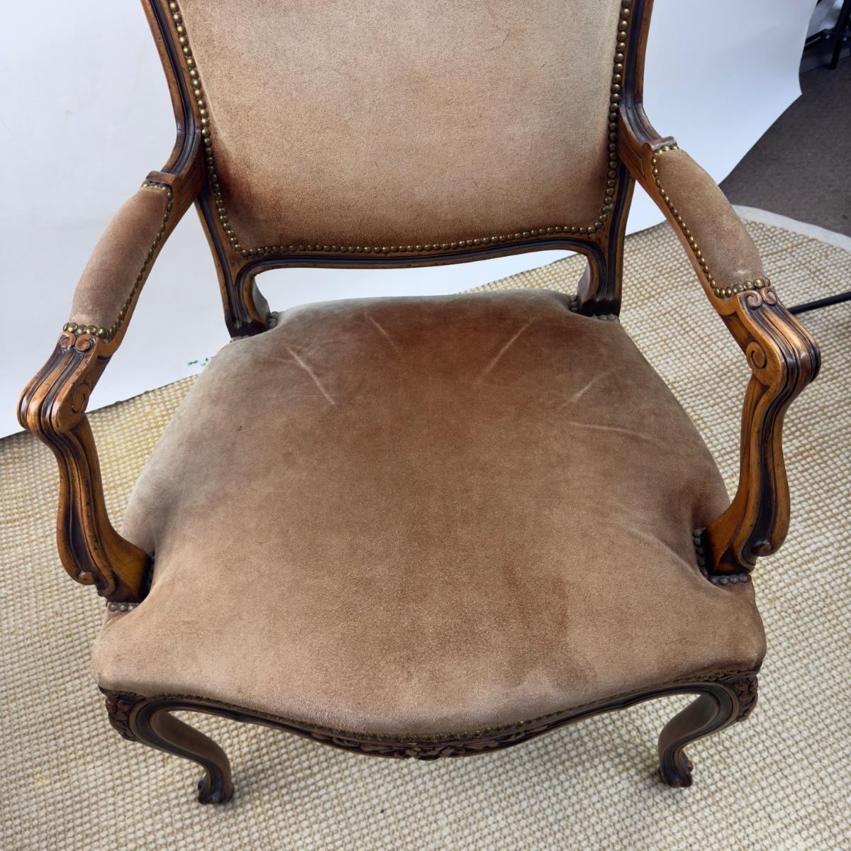 836 Vintage Suede French Upholstered Arm Chair