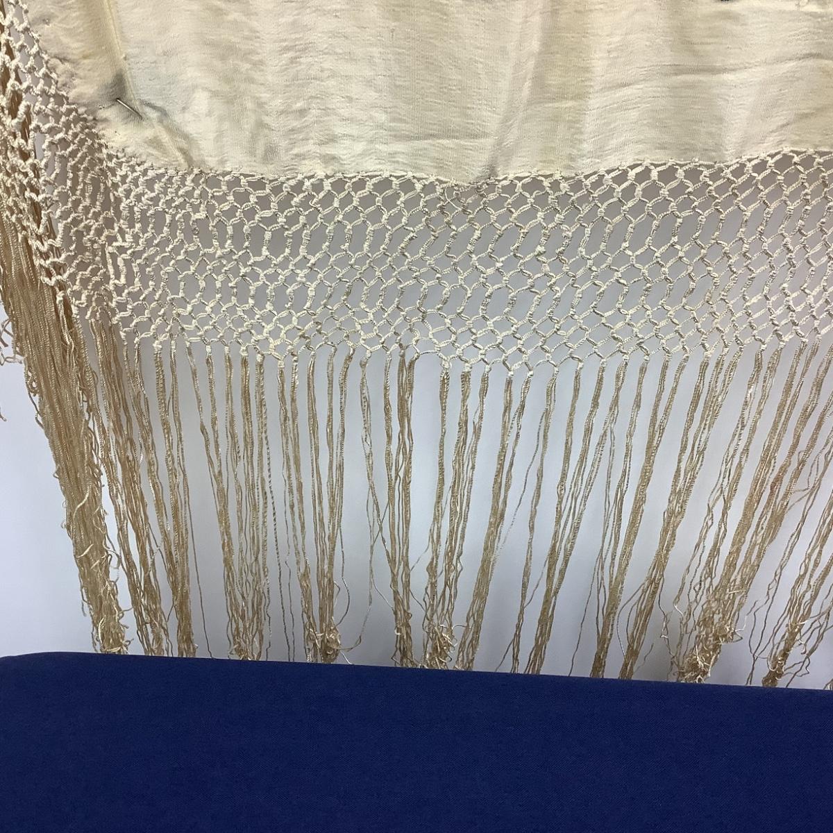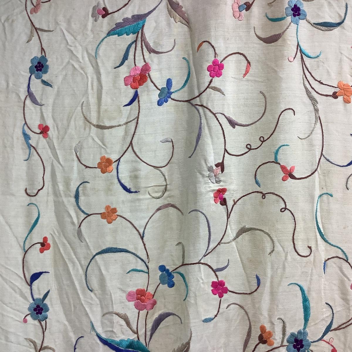 Shawl measures 60" x 60". Beautiful blue, orange and pink floral details.