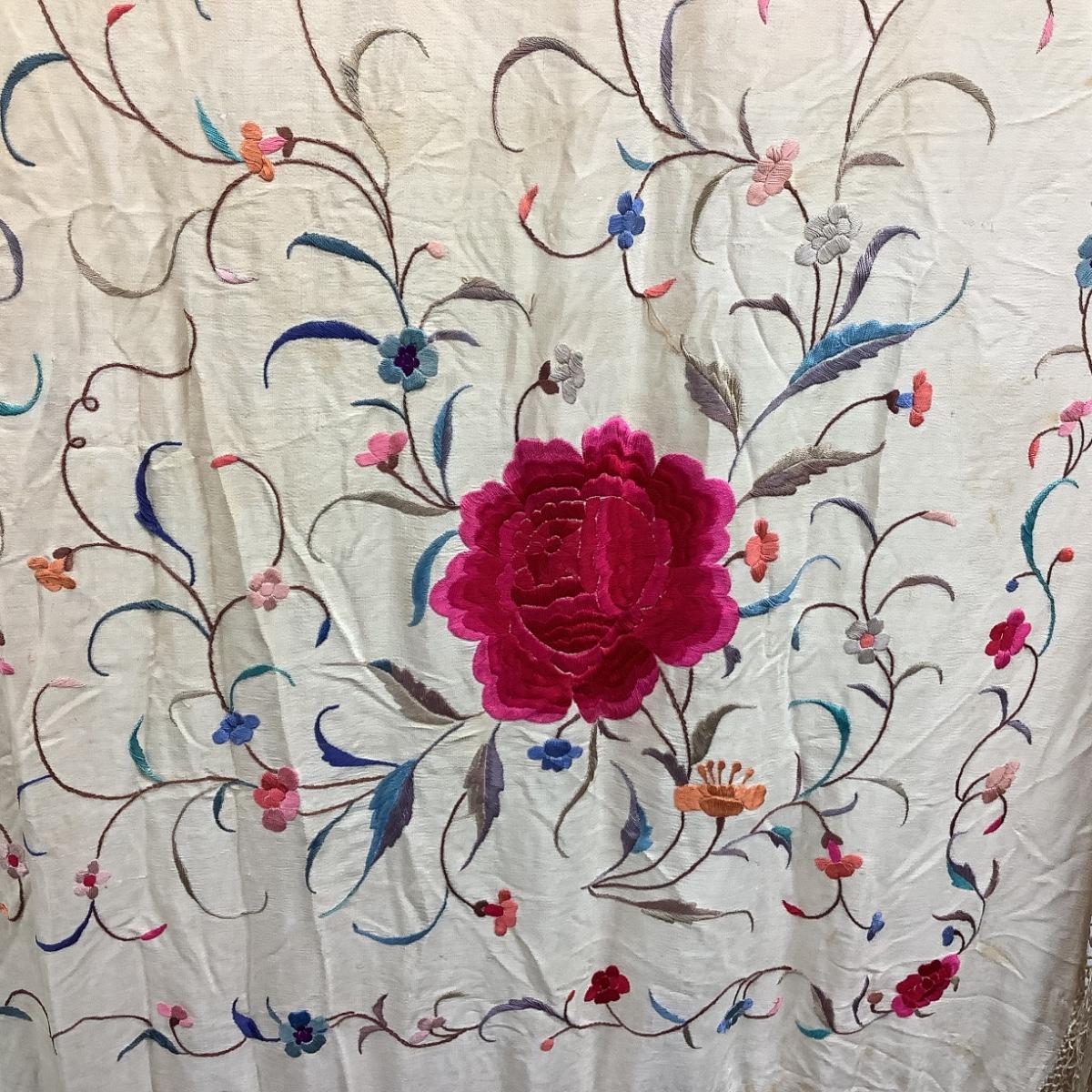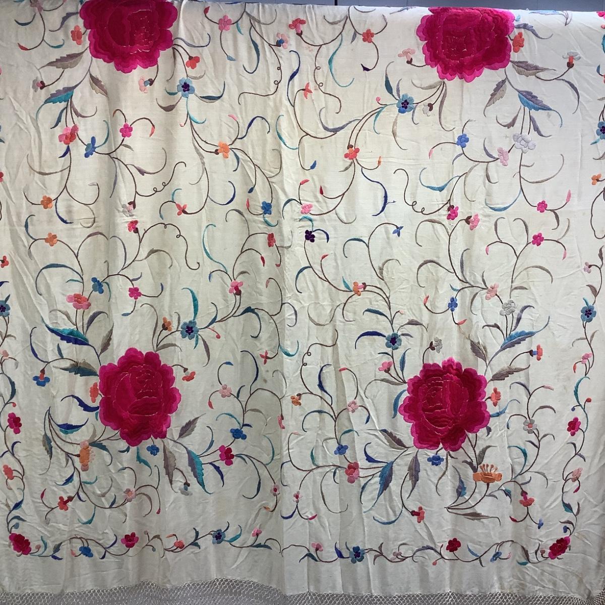 837 Antique Piano Manton Shawl Hot Pink Large Floral Design