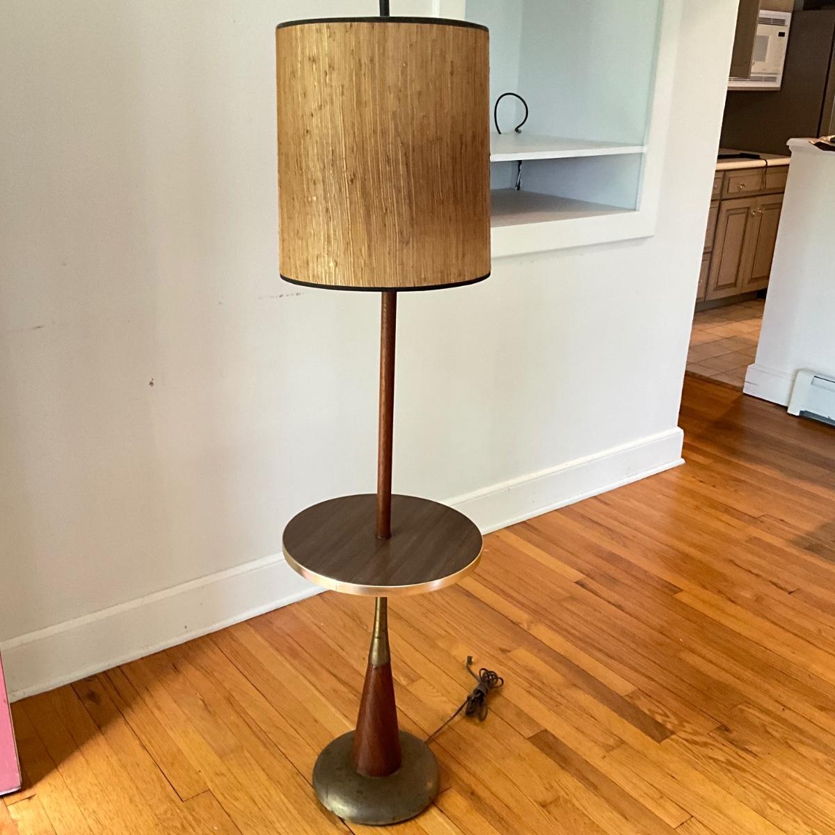 839 Mid Century Modern Mahogany and Brass Floor Lamp