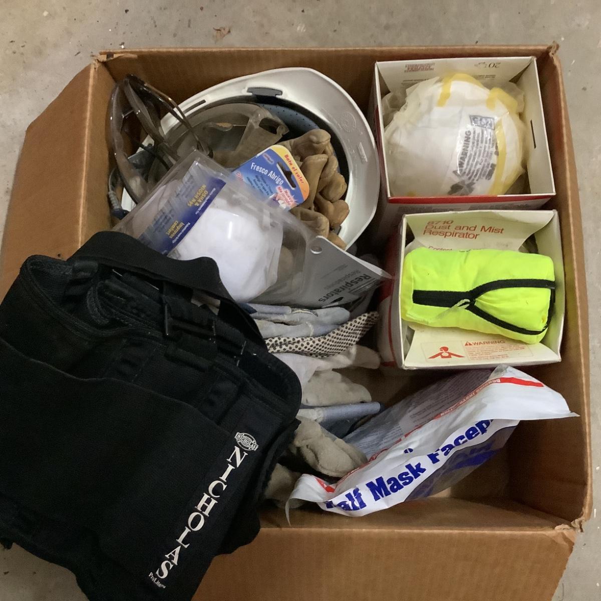 838 Personal Protection Lot , Hard Hat, Gloves, Mask, Back Support, Glasses