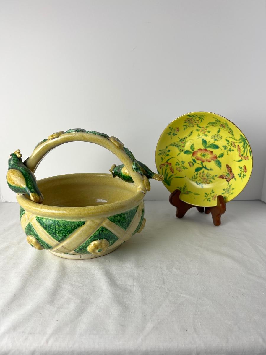 8390 Italian Bird Pottery Basket with Chinese Bowl