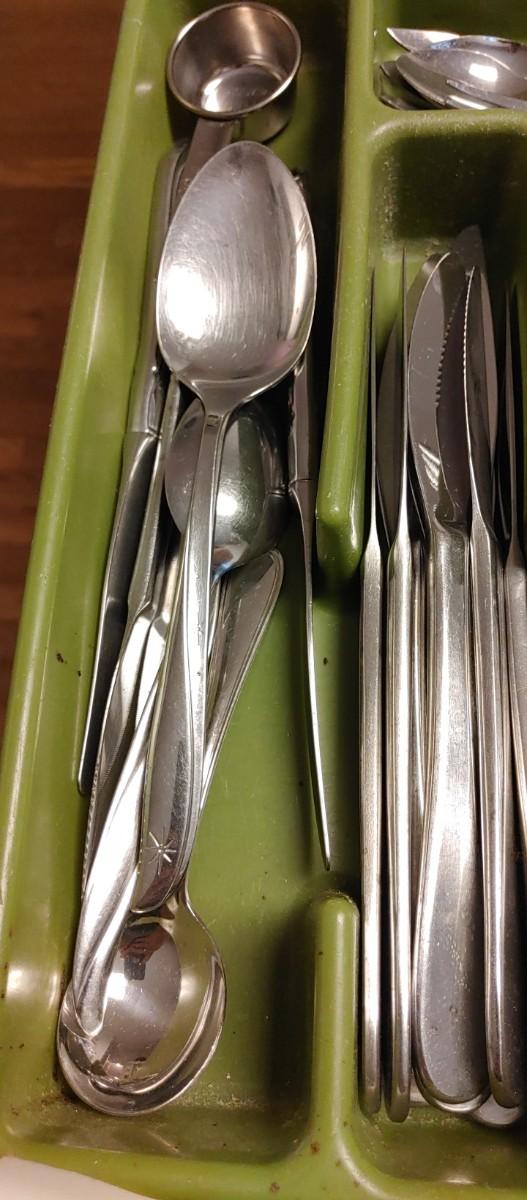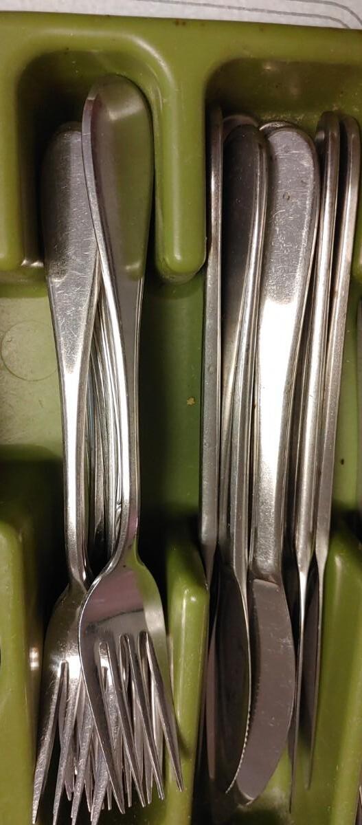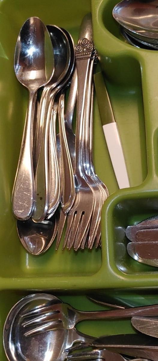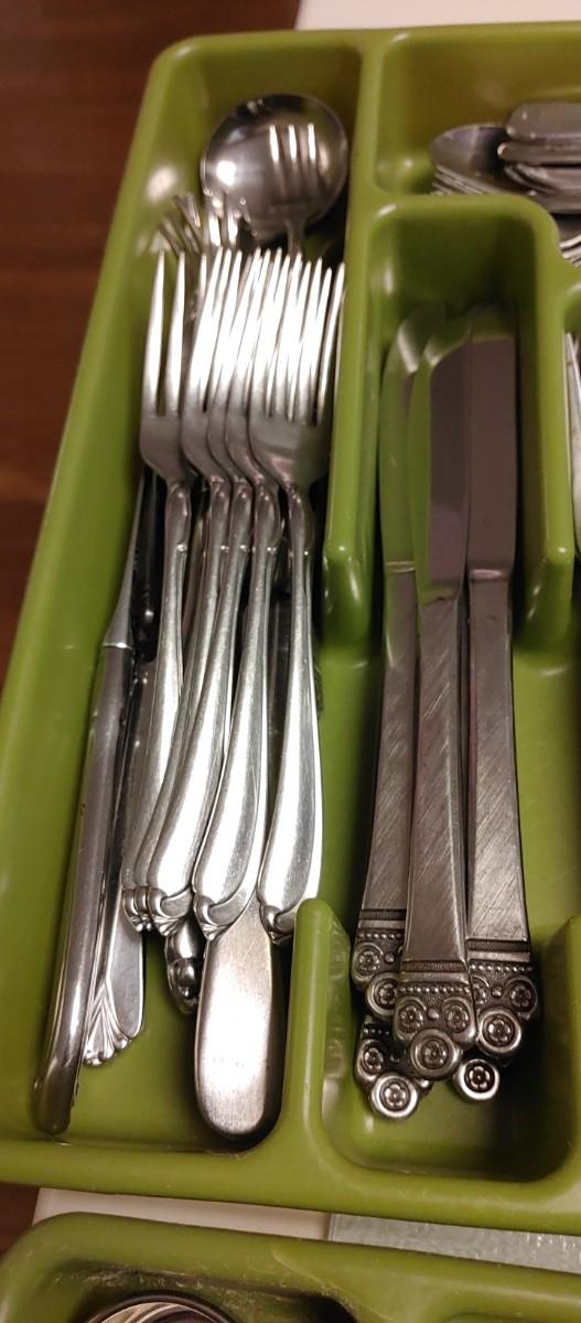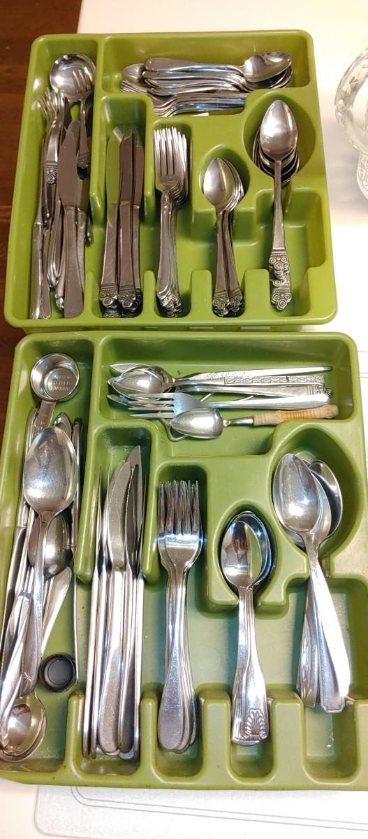 #84 ( 2 ) Containers Of Vintage Heavy Stainless Steel Cutlery. Quality heavy.. at least two complete patterns a boatload of quality beautiful stainless steel vintage flatware! Buyer will be very pleased! This is quality heavyflatware...not easily bent!
