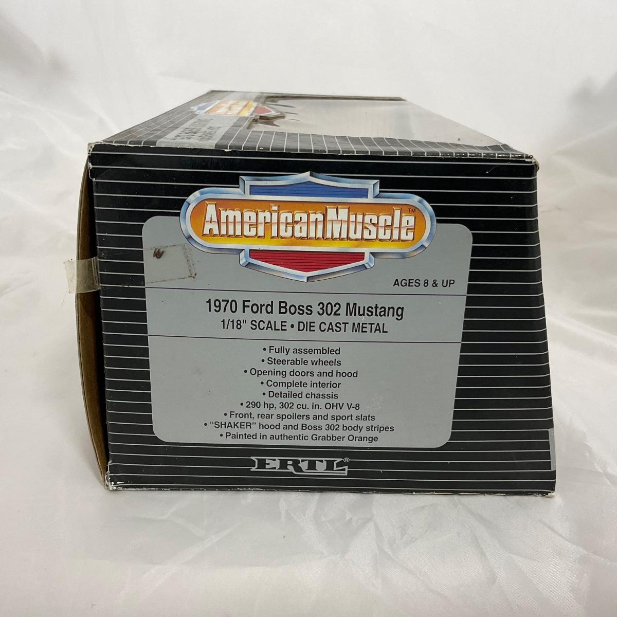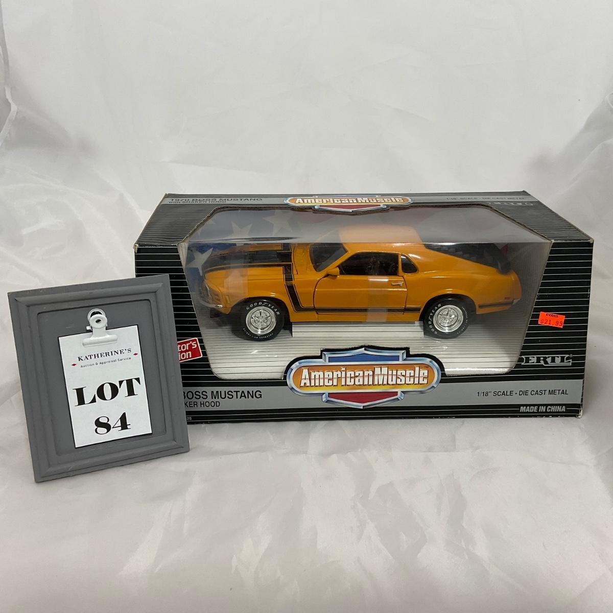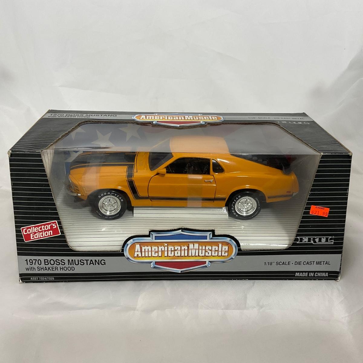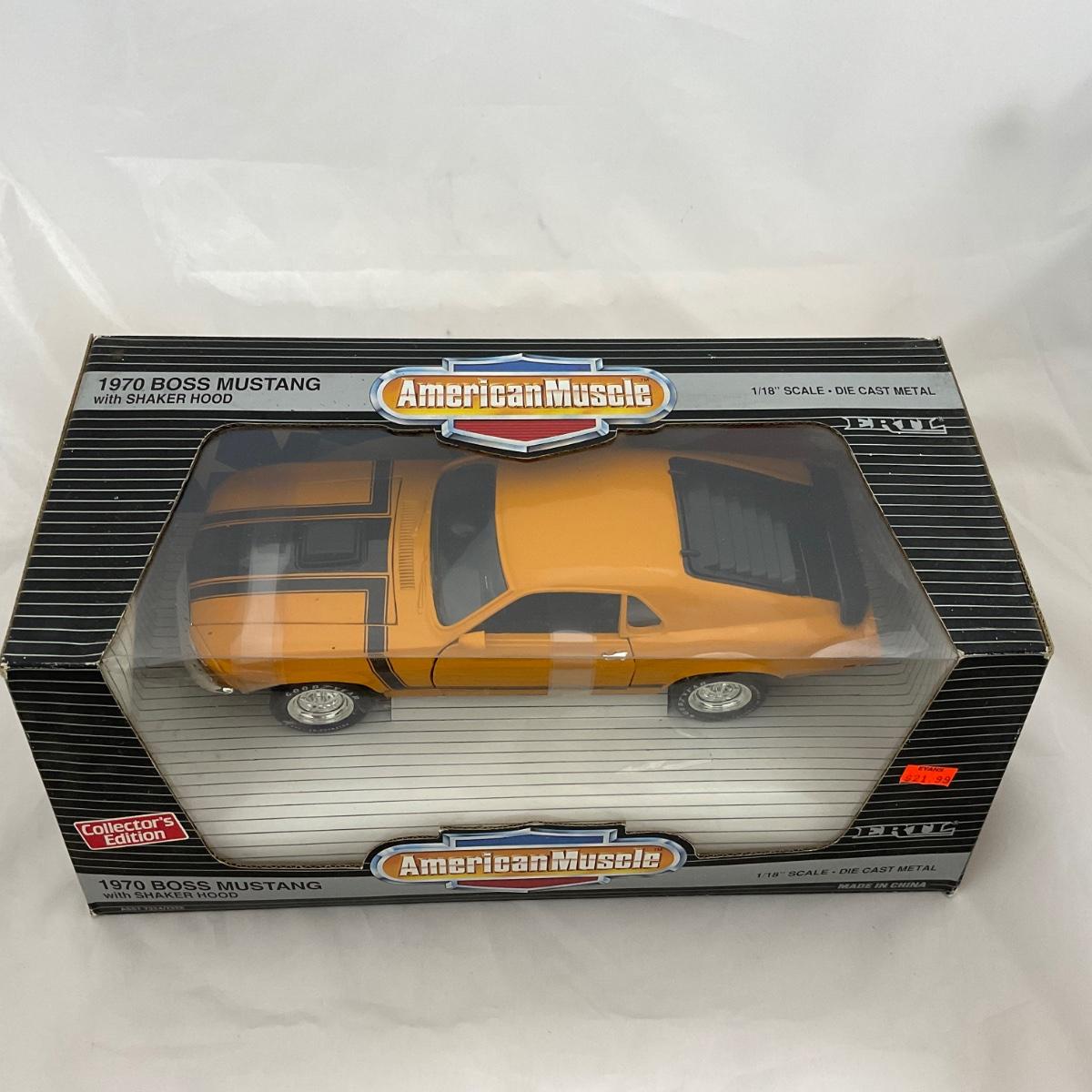 One die cast 1:18 scale 1970 Ford Boss 302 Mustang in box. Please see photos for details and condition. ::: Shipping is available on this lot. If you require shipping you must let us know at the close of the auction. We will coordinate with you after the item has been won. Shipping fees will include insurance up to or exceeding the value of all items being mailed. If you have any questions regarding this lot please contact the auctioneer either via this website, by direct email or by phone. PICK UP TIMES and other important information can be found in the TERMS and DESCRIPTION of the auction. Please take a look for pertinent information. Thanks!