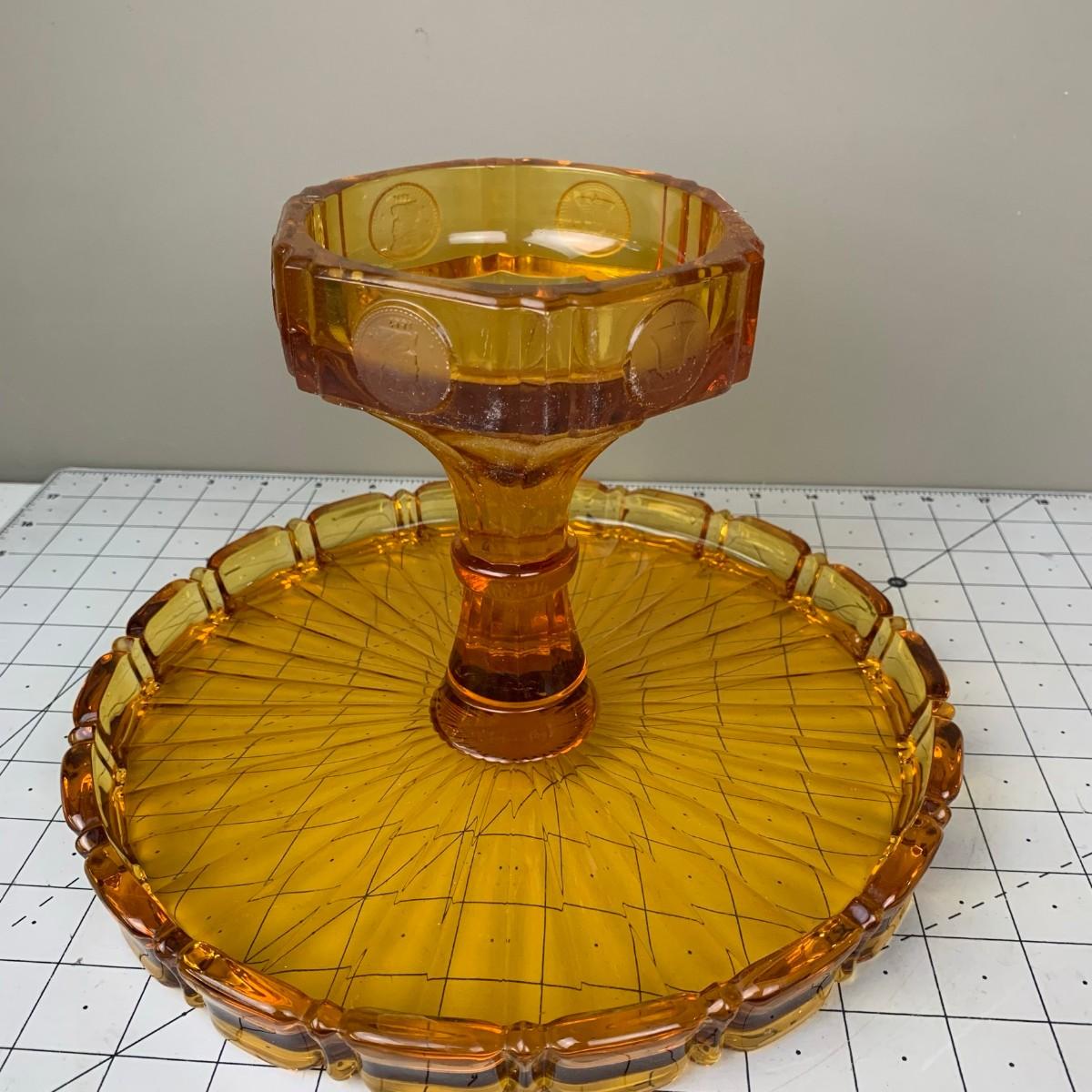 #84 Fostoria Coin Glass Amber Round Cake Stand