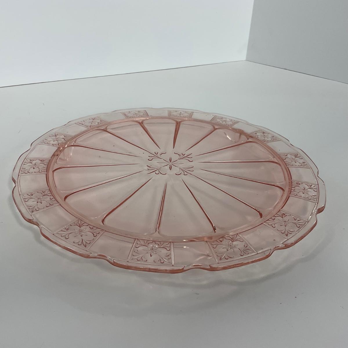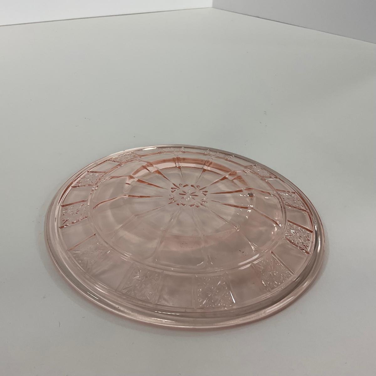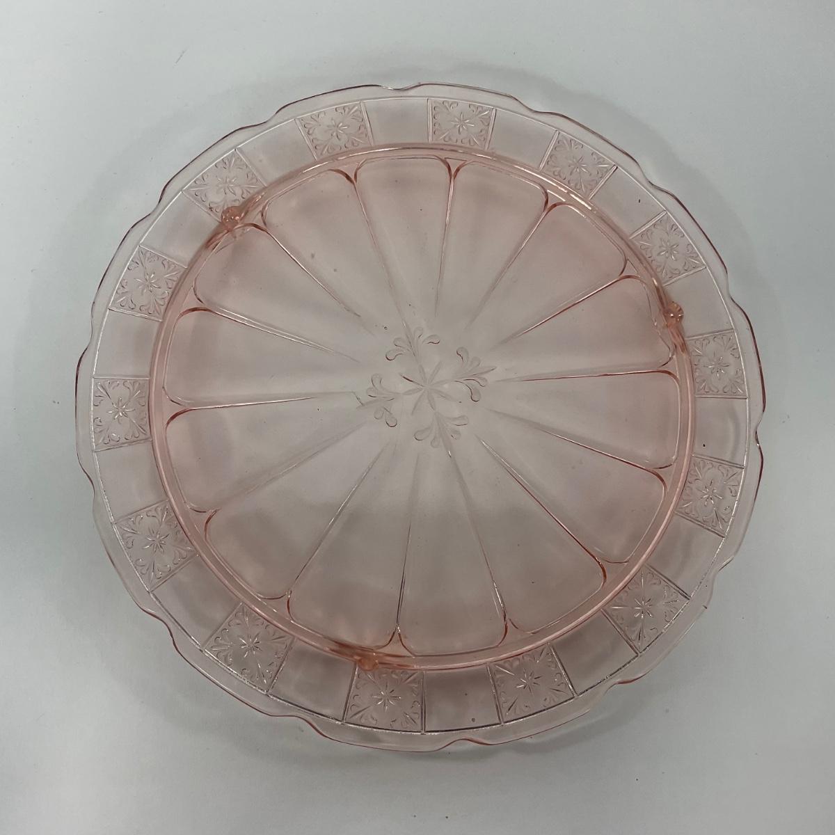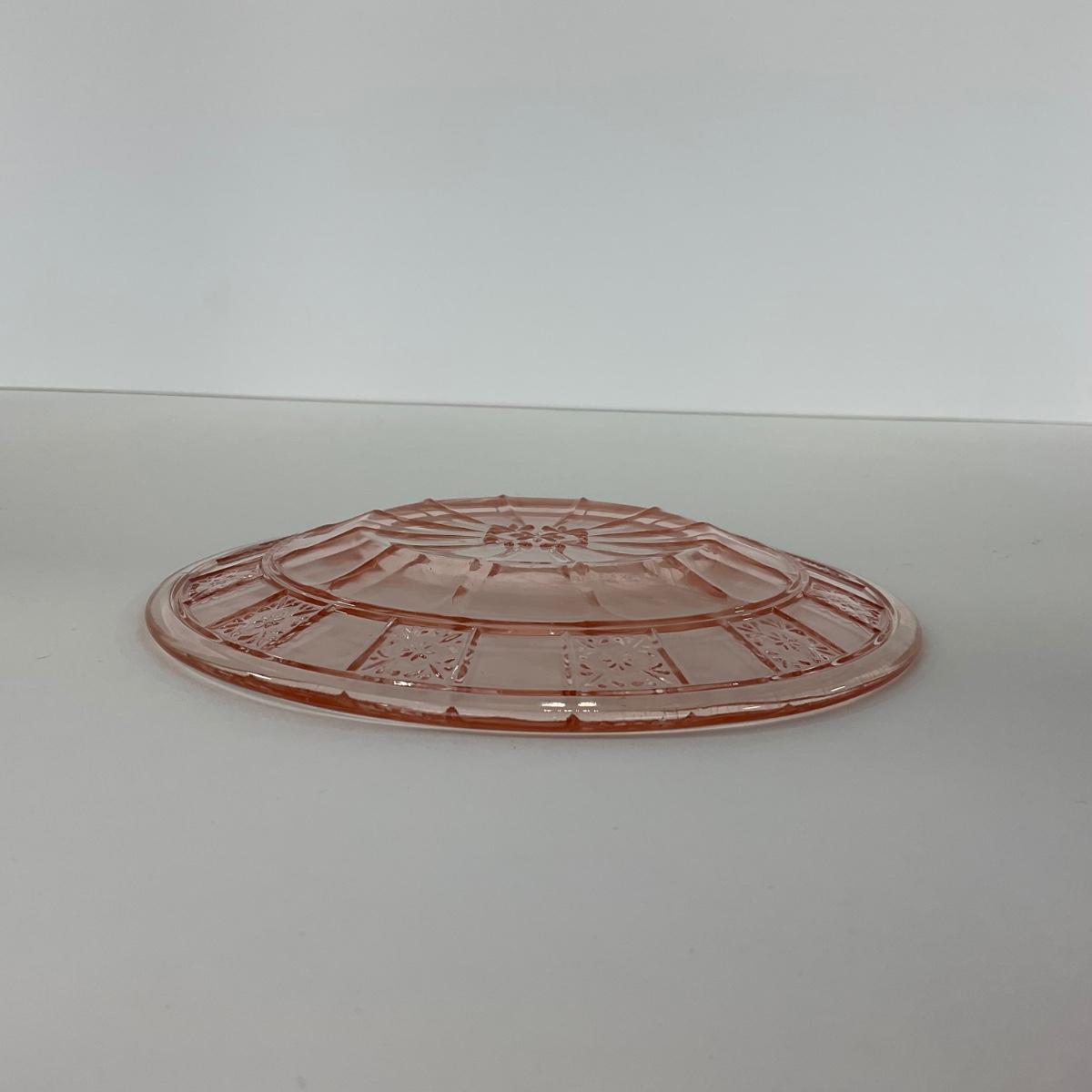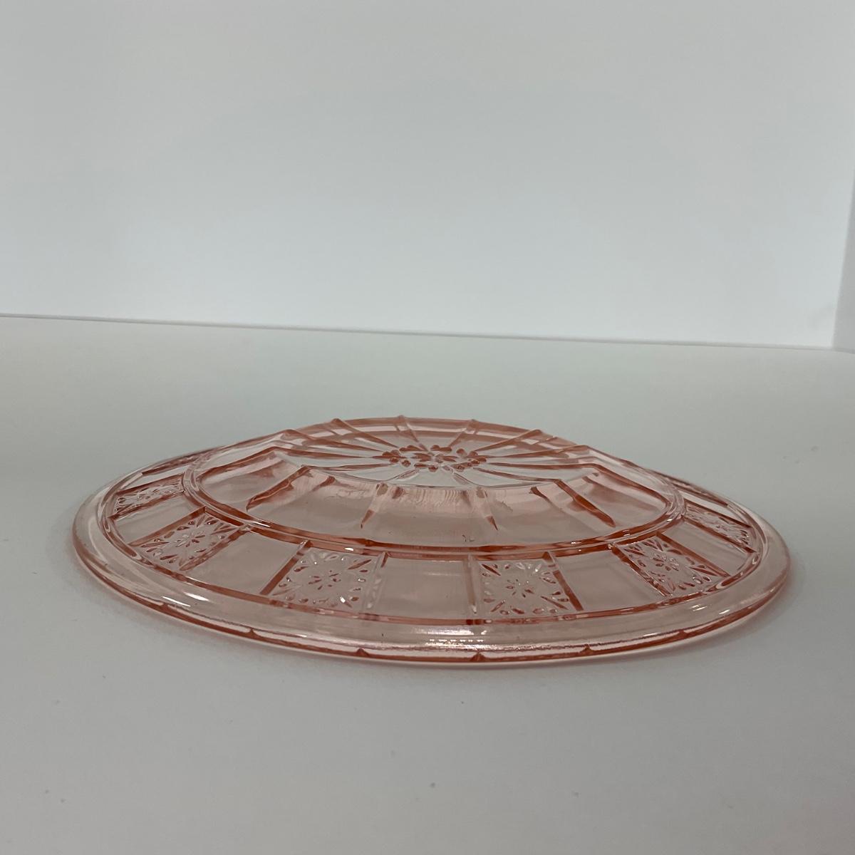 Six Doric Jeanette Glass Co. pink depression pieces including one large footed cake plate, three small plates, and two sherbets. Please see photos for details and condition. ::: Shipping is available on this lot. If you require shipping you must let us know at the close of the auction. We will coordinate with you after the item has been won. Shipping fees will include insurance up to or exceeding the value of all items being mailed. If you have any questions regarding this lot please contact the auctioneer either via this website, by direct email or by phone. PICK UP TIMES and other important information can be found in the TERMS and DESCRIPTION of the auction. Please take a look for pertinent information. Thanks!