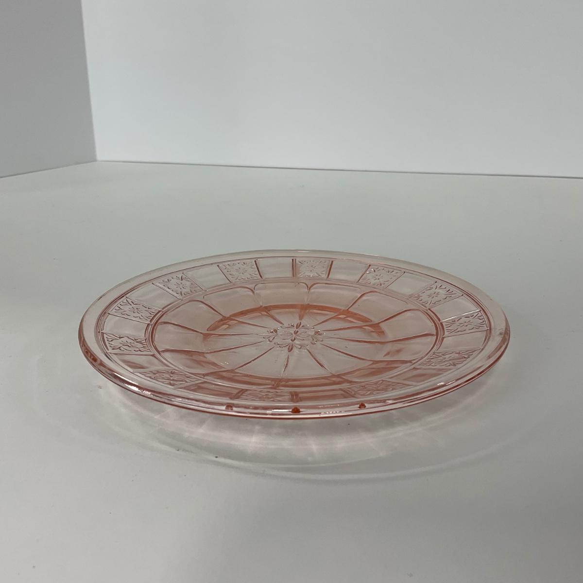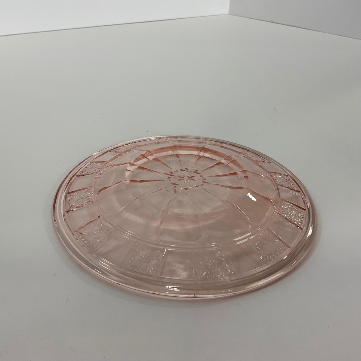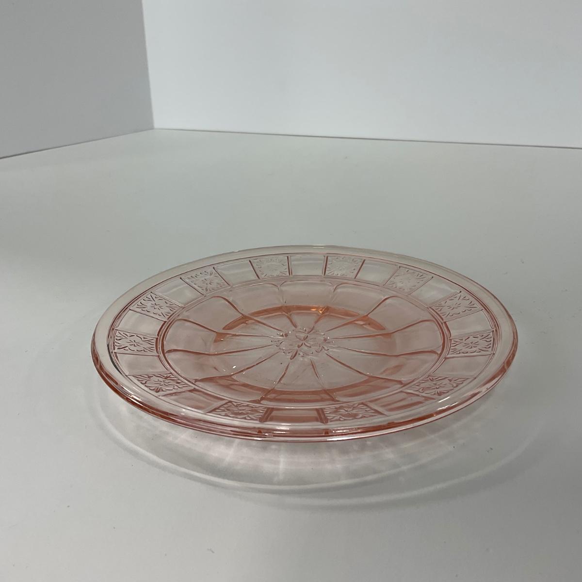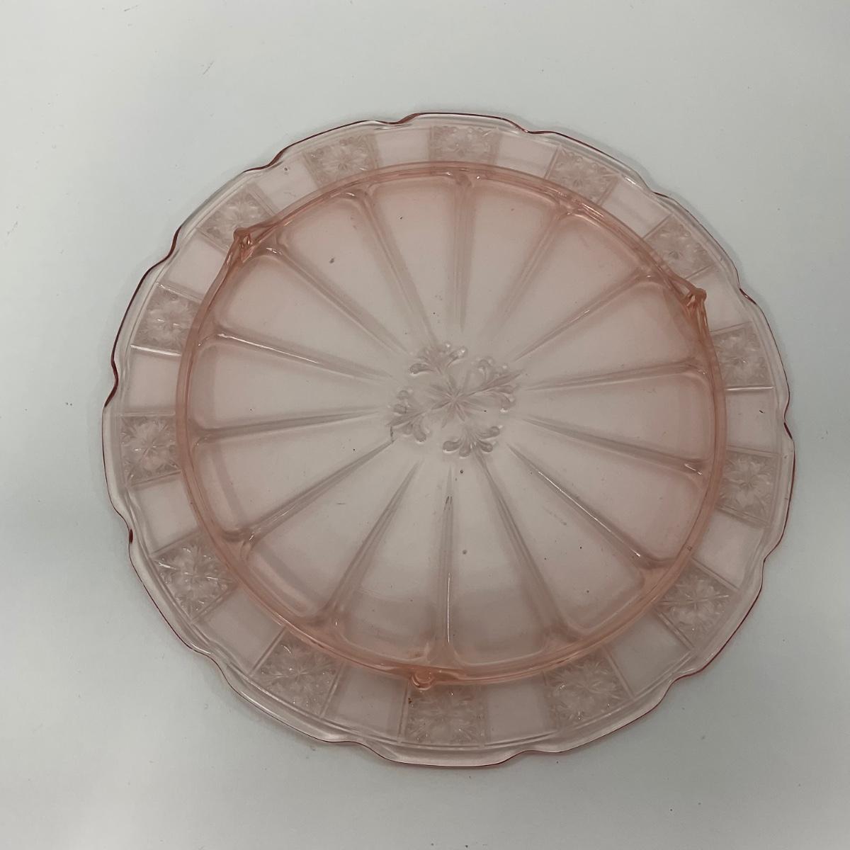 Six Doric Jeanette Glass Co. pink depression pieces including one large footed cake plate, three small plates, and two sherbets. Please see photos for details and condition. ::: Shipping is available on this lot. If you require shipping you must let us know at the close of the auction. We will coordinate with you after the item has been won. Shipping fees will include insurance up to or exceeding the value of all items being mailed. If you have any questions regarding this lot please contact the auctioneer either via this website, by direct email or by phone. PICK UP TIMES and other important information can be found in the TERMS and DESCRIPTION of the auction. Please take a look for pertinent information. Thanks!