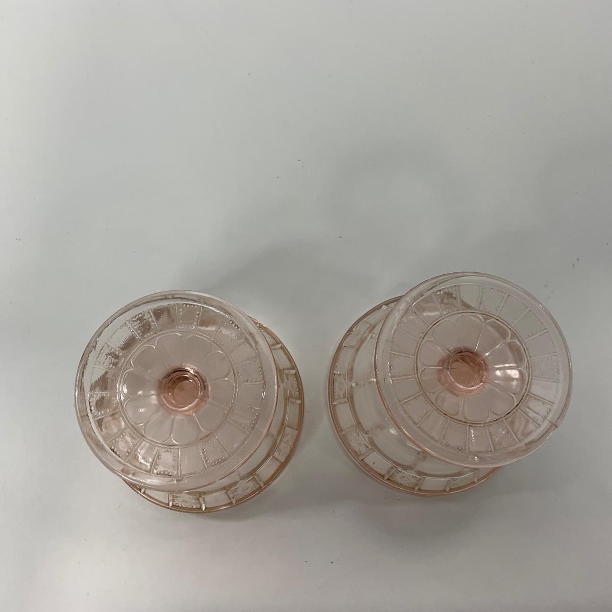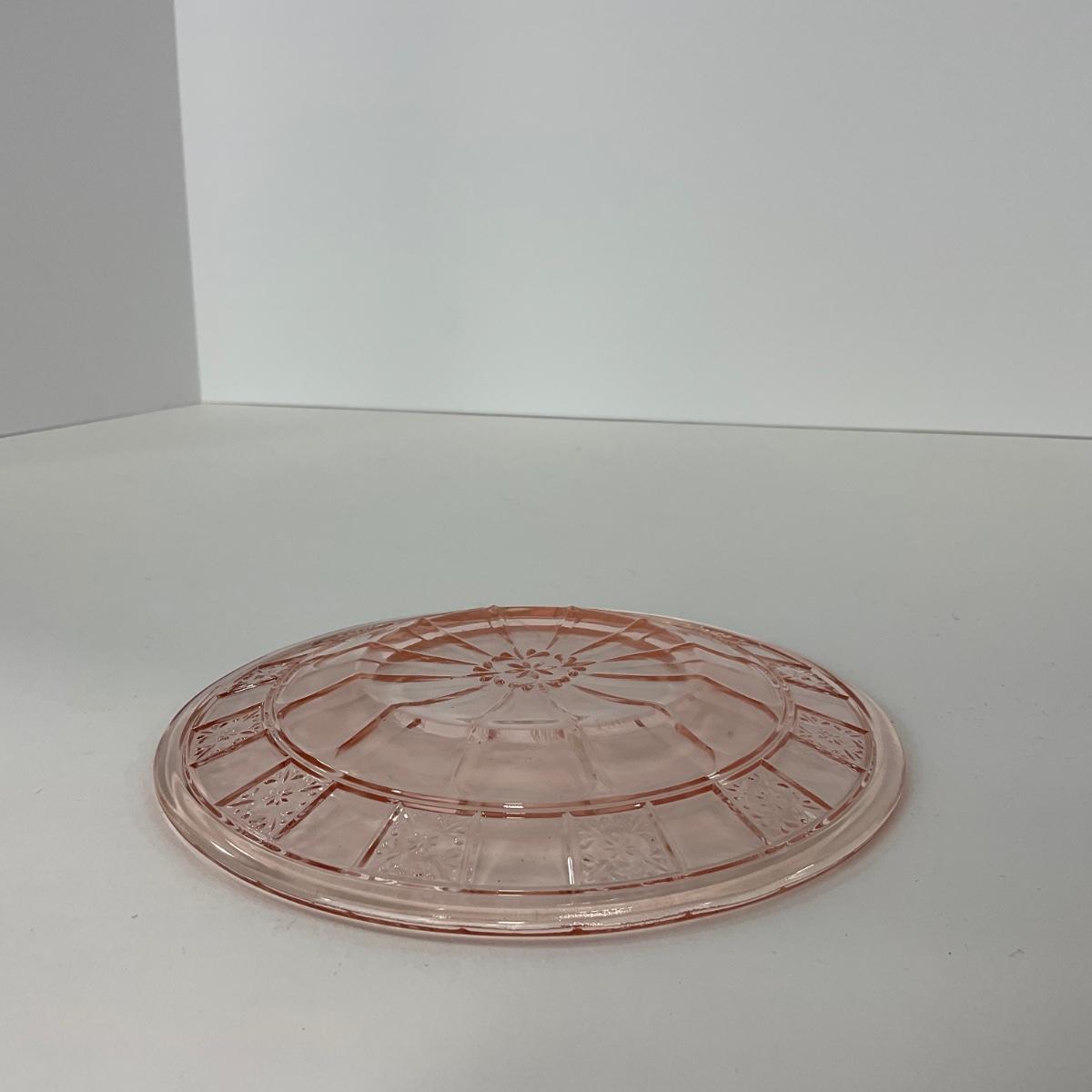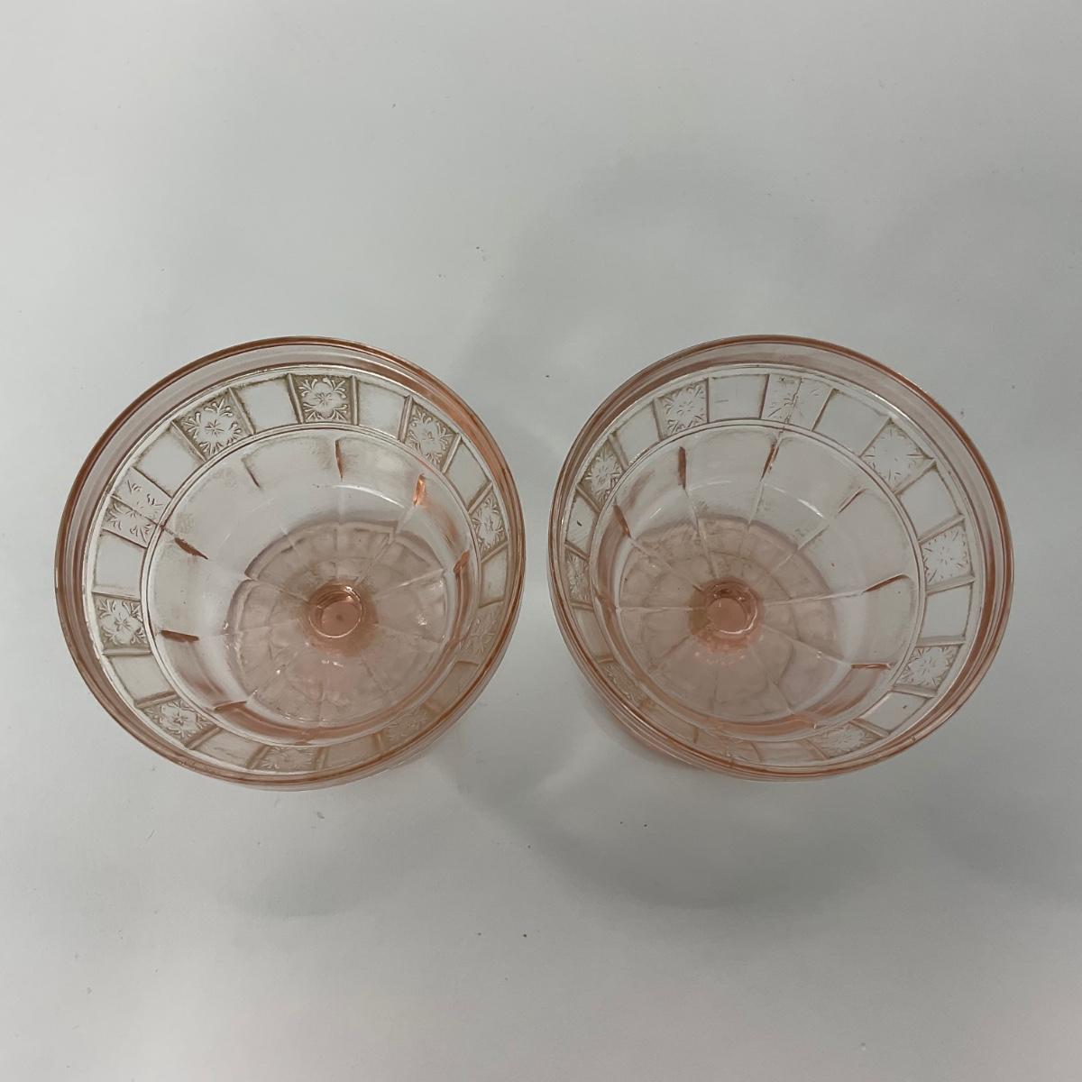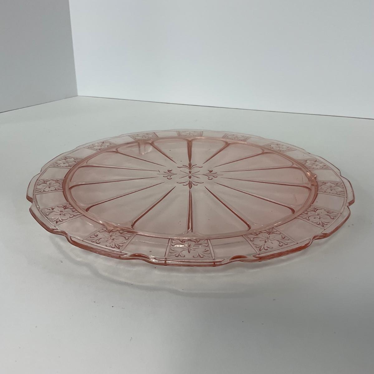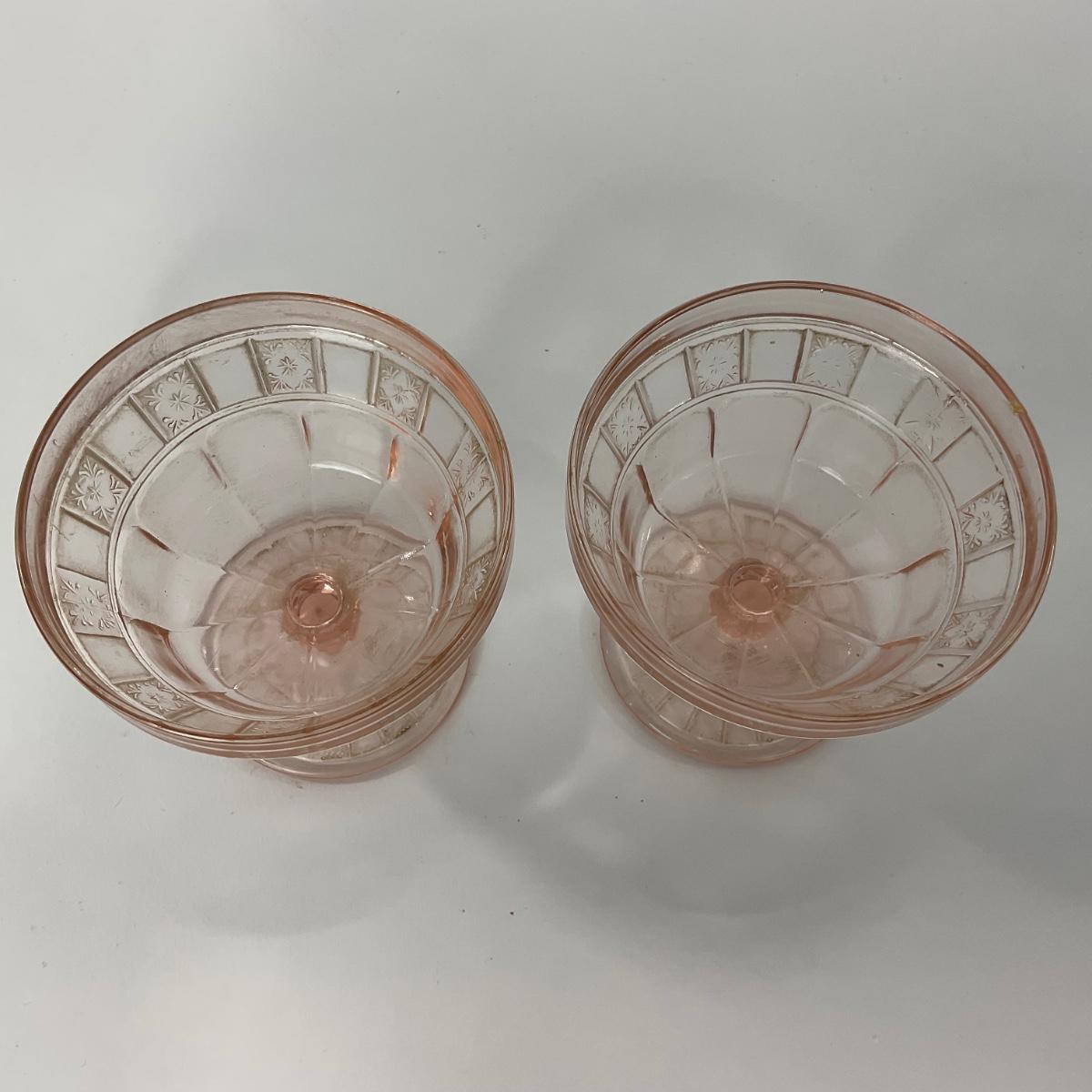 Six Doric Jeanette Glass Co. pink depression pieces including one large footed cake plate, three small plates, and two sherbets. Please see photos for details and condition. ::: Shipping is available on this lot. If you require shipping you must let us know at the close of the auction. We will coordinate with you after the item has been won. Shipping fees will include insurance up to or exceeding the value of all items being mailed. If you have any questions regarding this lot please contact the auctioneer either via this website, by direct email or by phone. PICK UP TIMES and other important information can be found in the TERMS and DESCRIPTION of the auction. Please take a look for pertinent information. Thanks!