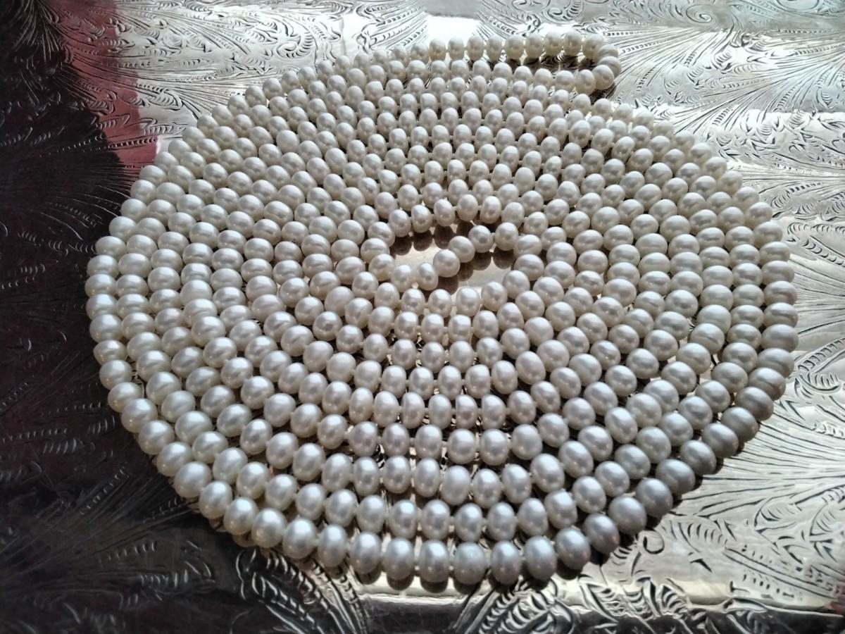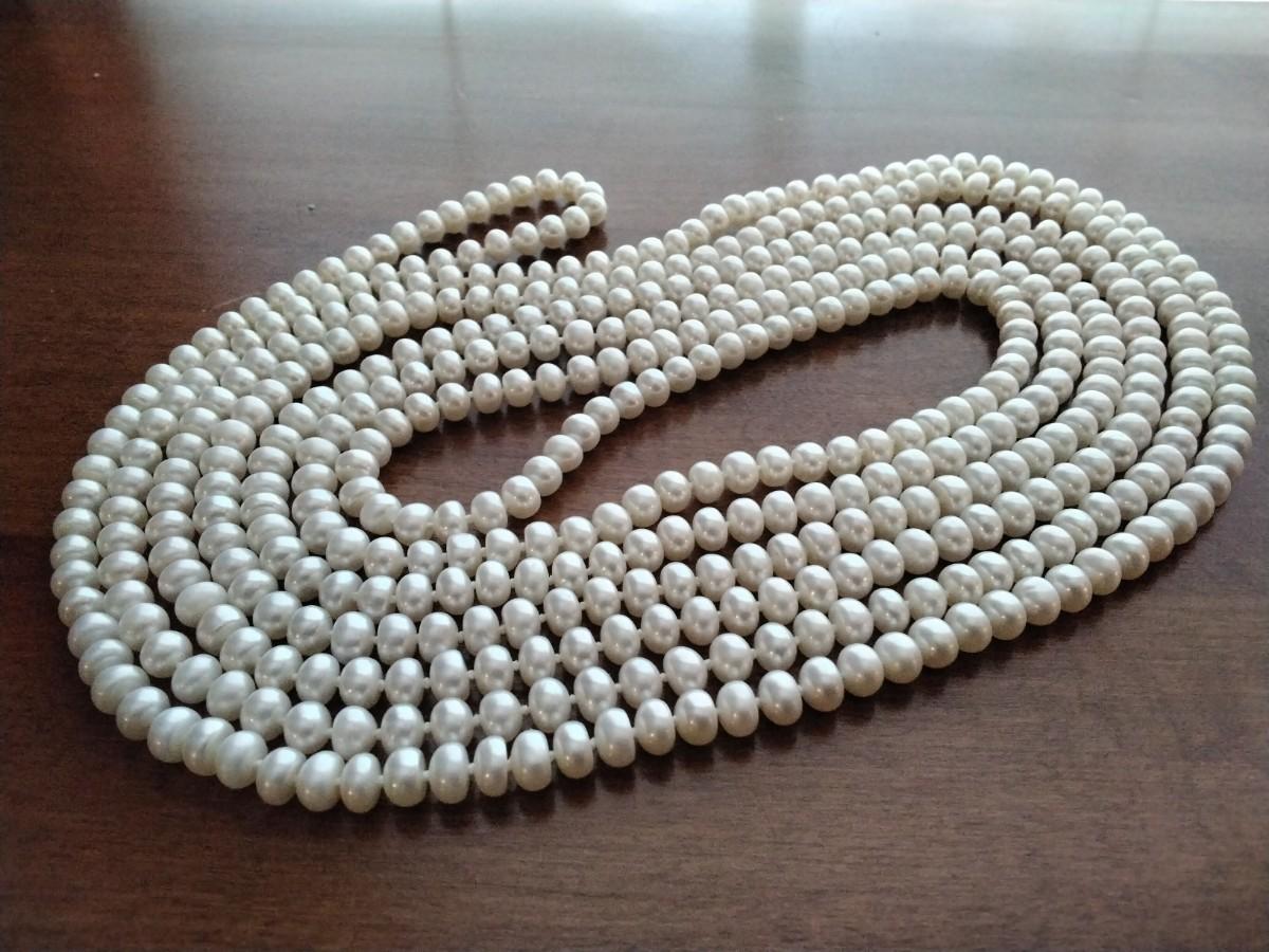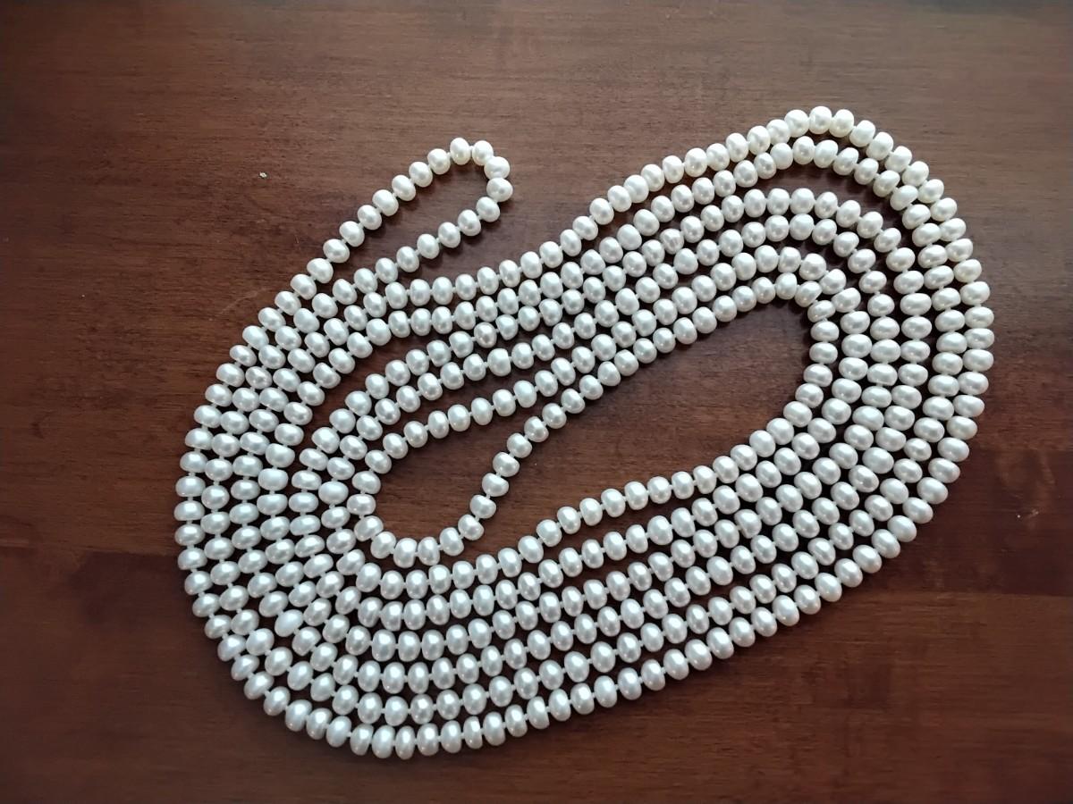 8'4" or 100" 6.5mm. Endless white pearl necklace.