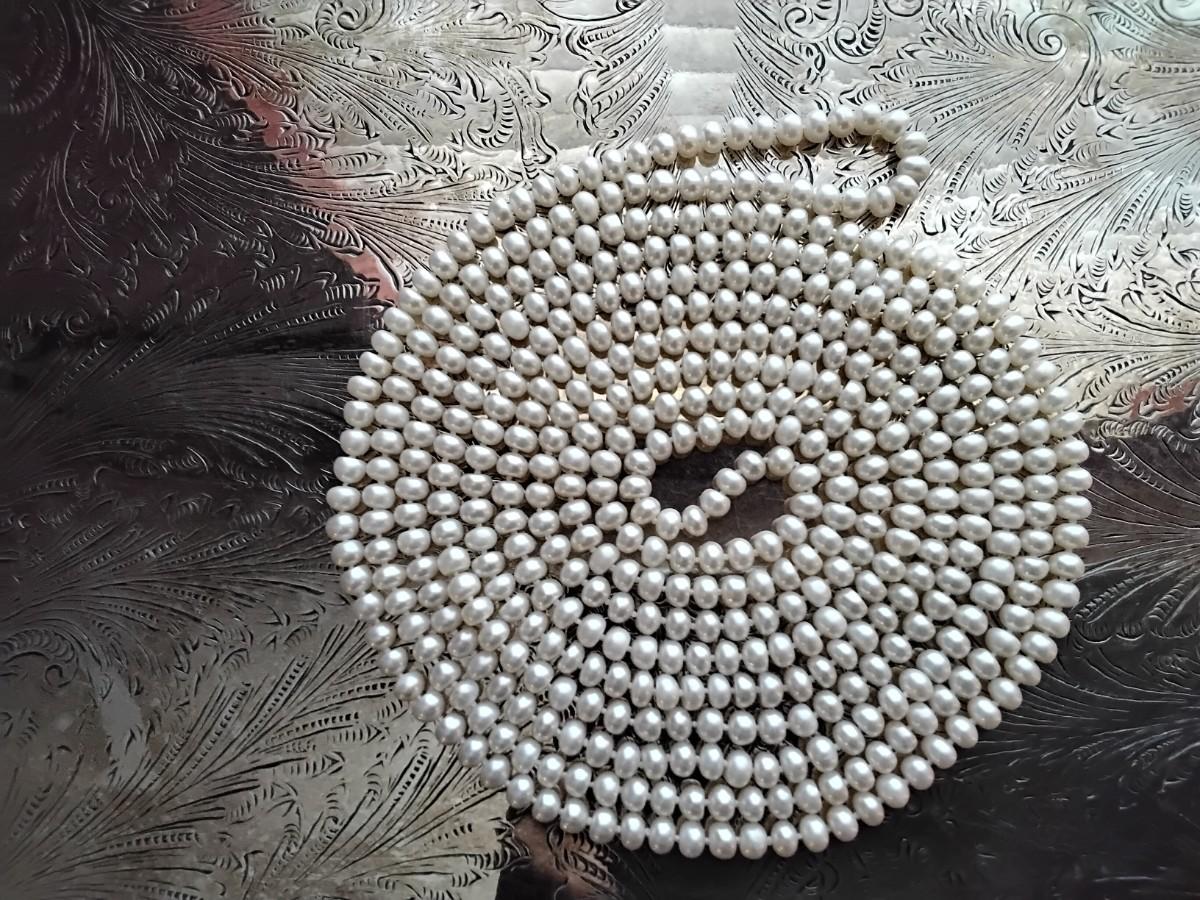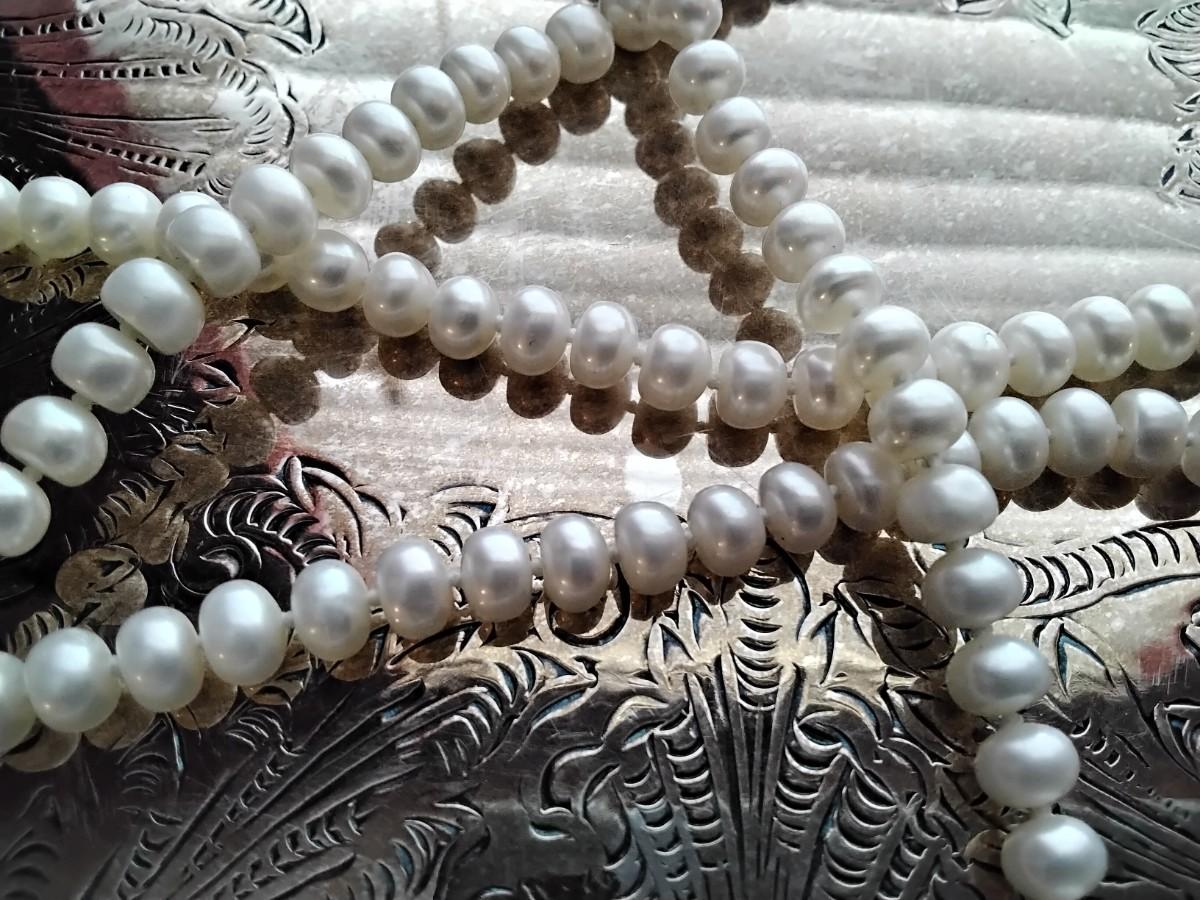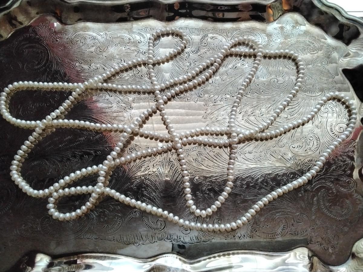 8'4" or 100" 6.5mm. Endless white pearl necklace.