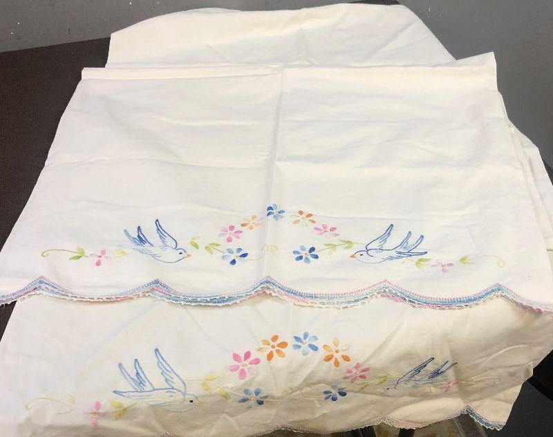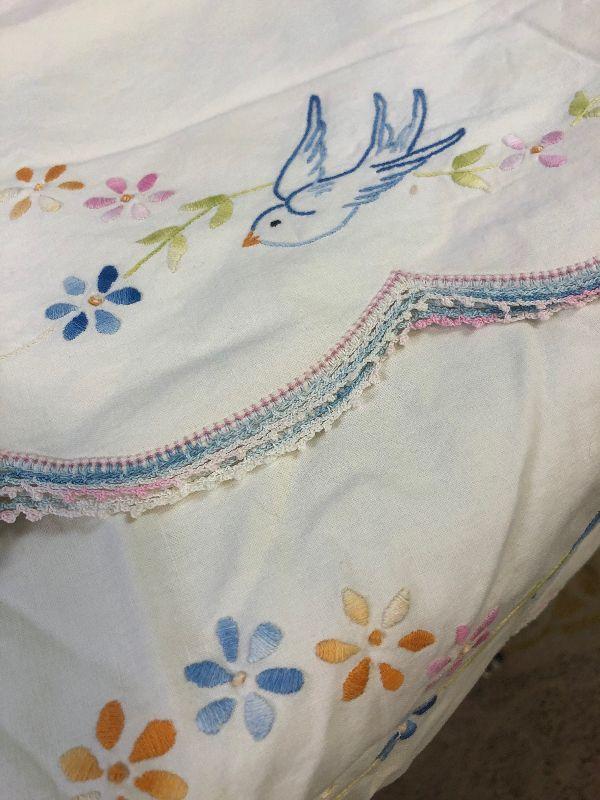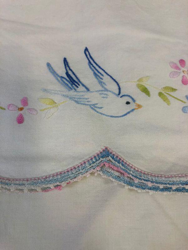 #84 pair of hand embroidered Blue Bird Pillowcases