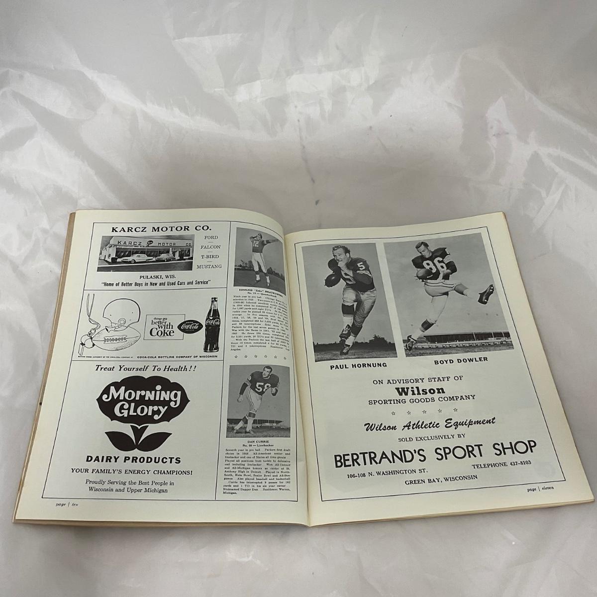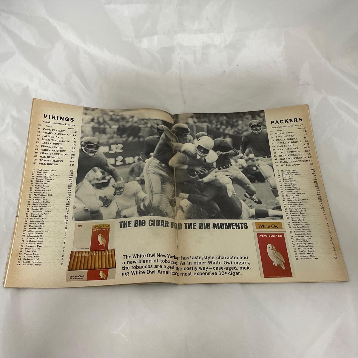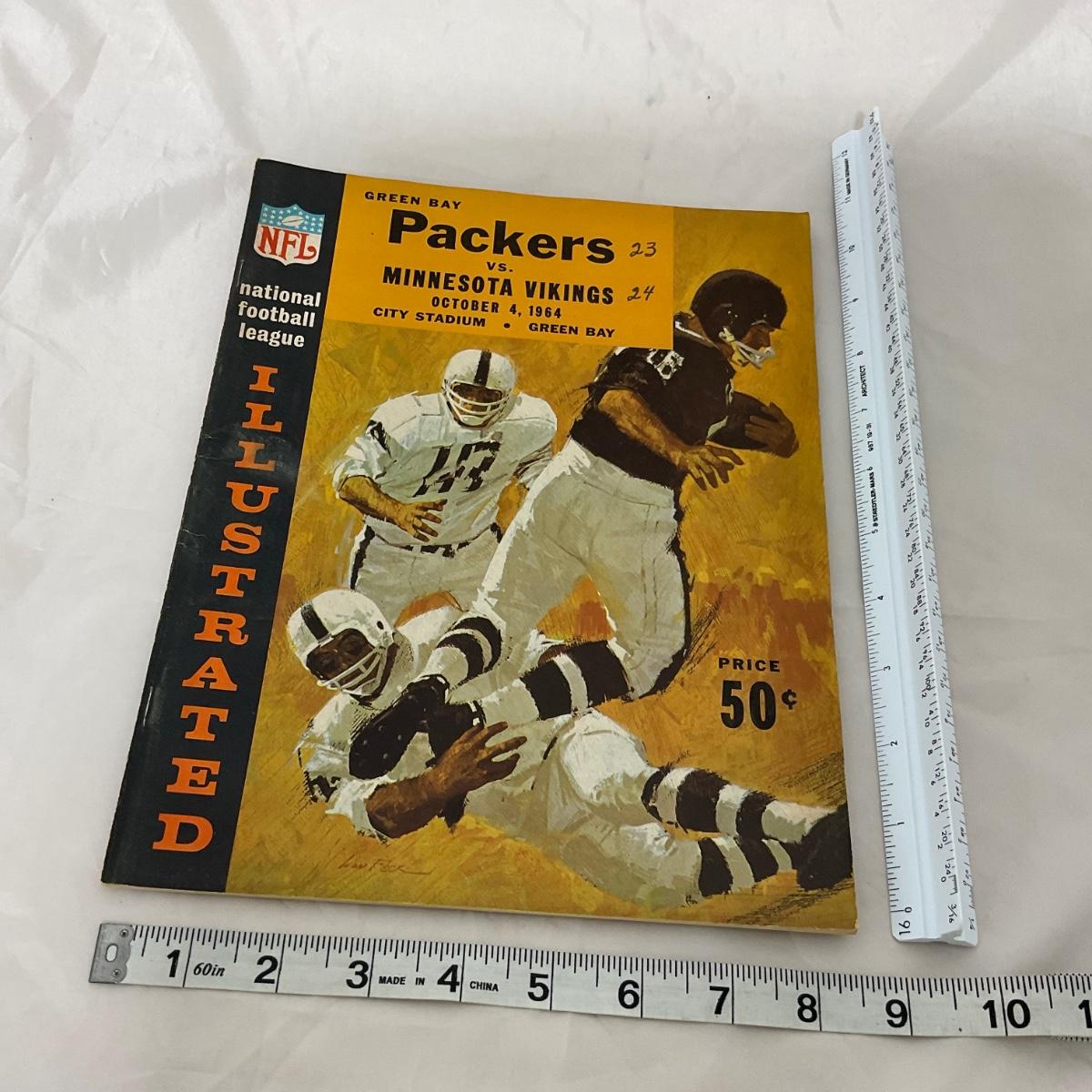 One 1964 Green Bay Packers vs The Minnesota Vikings program. Please see photos for details and condition. ::: Shipping is available on this lot. If you require shipping you must let us know at the close of the auction. We will coordinate with you after the item has been won. Shipping fees will include insurance up to or exceeding the value of all items being mailed. If you have any questions regarding this lot please contact the auctioneer either via this website, by direct email or by phone. PICK UP TIMES and other important information can be found in the TERMS and DESCRIPTION of the auction. Please take a look for pertinent information. Thanks!