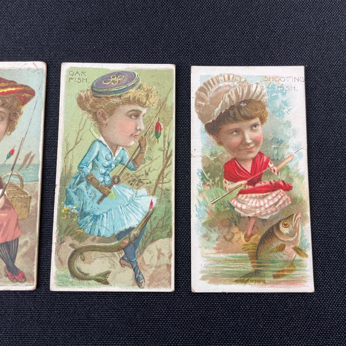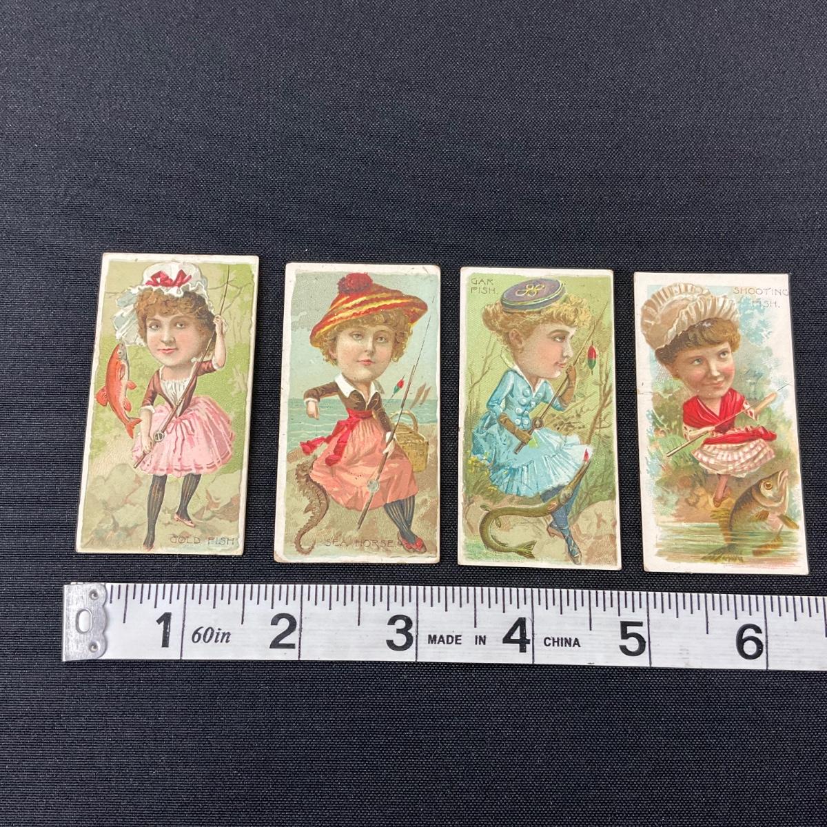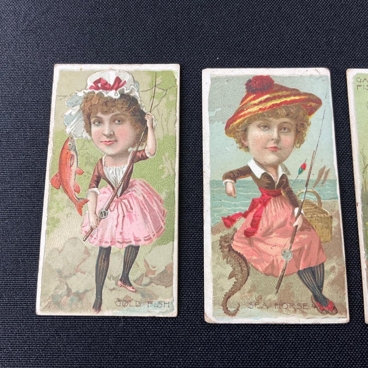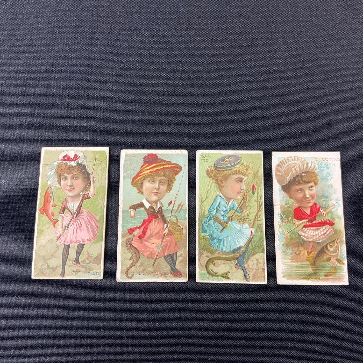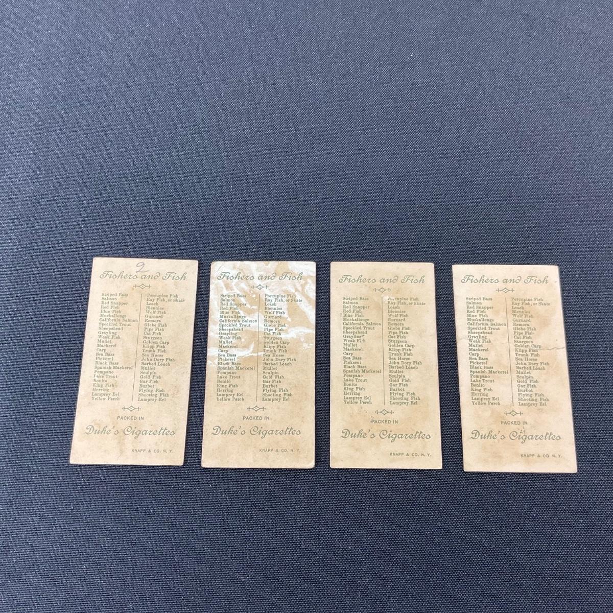 Four vintage Dukes cigarettes tobacco cards from the series Fishers and Fish. these cards do have some wear and damage to them. Please see photos for details and condition. Any condition statement is given as a courtesy to a client, is an opinion, and should not be treated as a statement of fact. Reference to condition written, oral or within a condition report shall not be regarded as a full account of condition and may not include all defects, alterations, or restorations. Absence of a condition report does not imply a lot is flawless or lacking imperfections or damage. Katherine’s Auction & Appraisal Service shall have no responsibility for any error or omission. Returns shall not be accepted on the basis of condition. ::: Shipping is available on this lot. If you require shipping you must let us know at the close of the auction. We will coordinate with you after the item has been won. Shipping fees will include insurance up to or exceeding the value of all items being mailed. If you have any questions regarding this lot please contact the auctioneer either via this website, by direct email or by phone. PICK UP TIMES and other important information can be found in the TERMS and DESCRIPTION of the auction. Please take a look for pertinent information. Thanks!