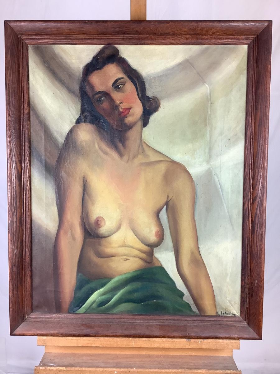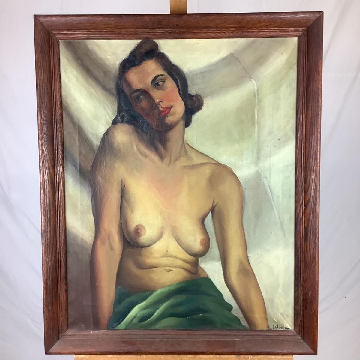 840 1950s Nude Portrait Oil on Canvas by M. Soloman