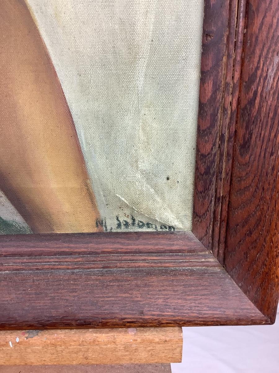 1950s Nude Portrait Oil on Canvas by M. Soloman