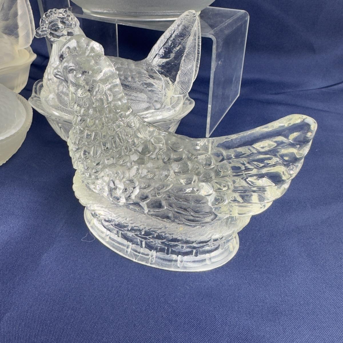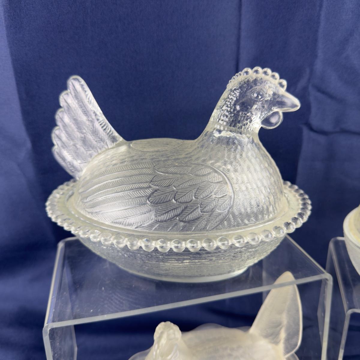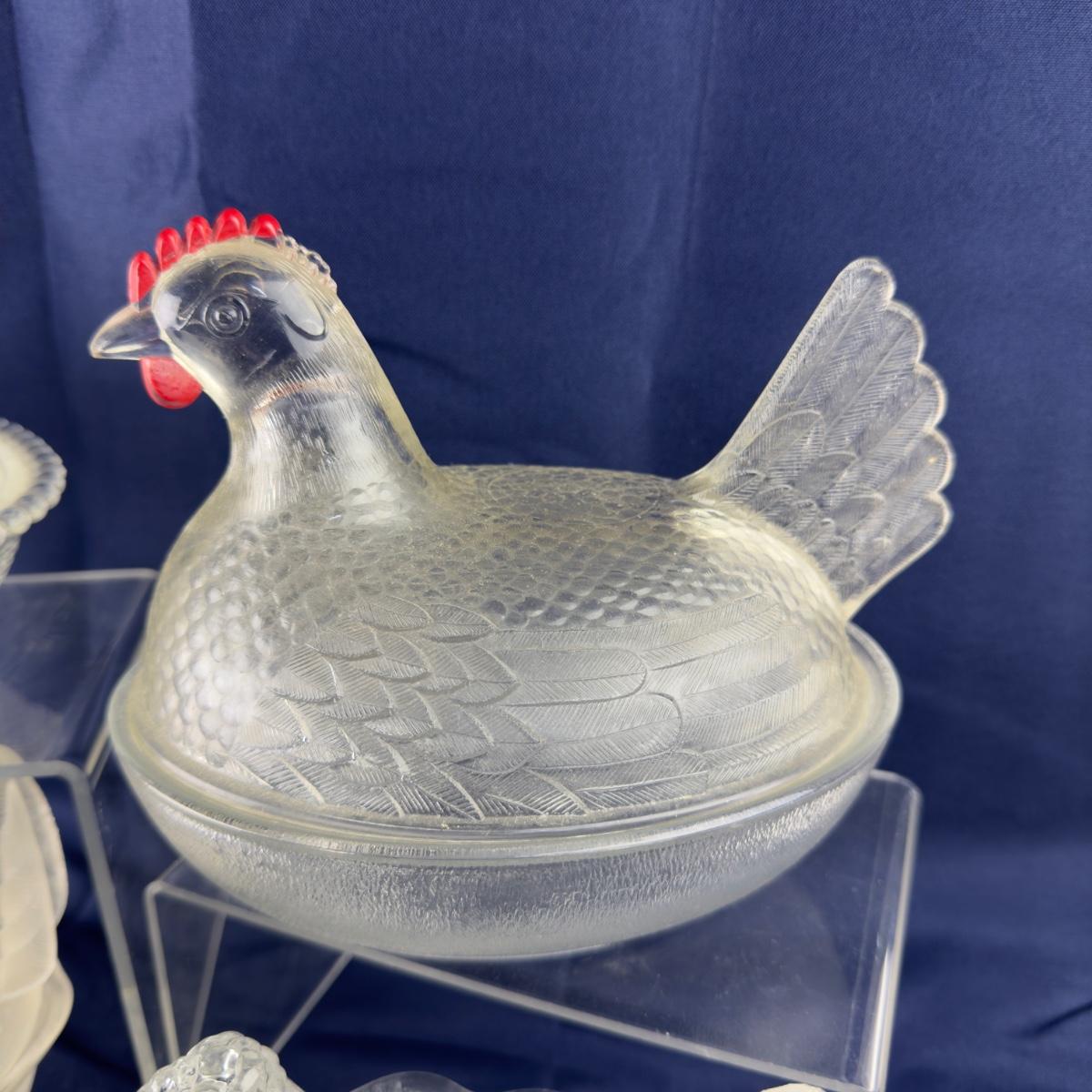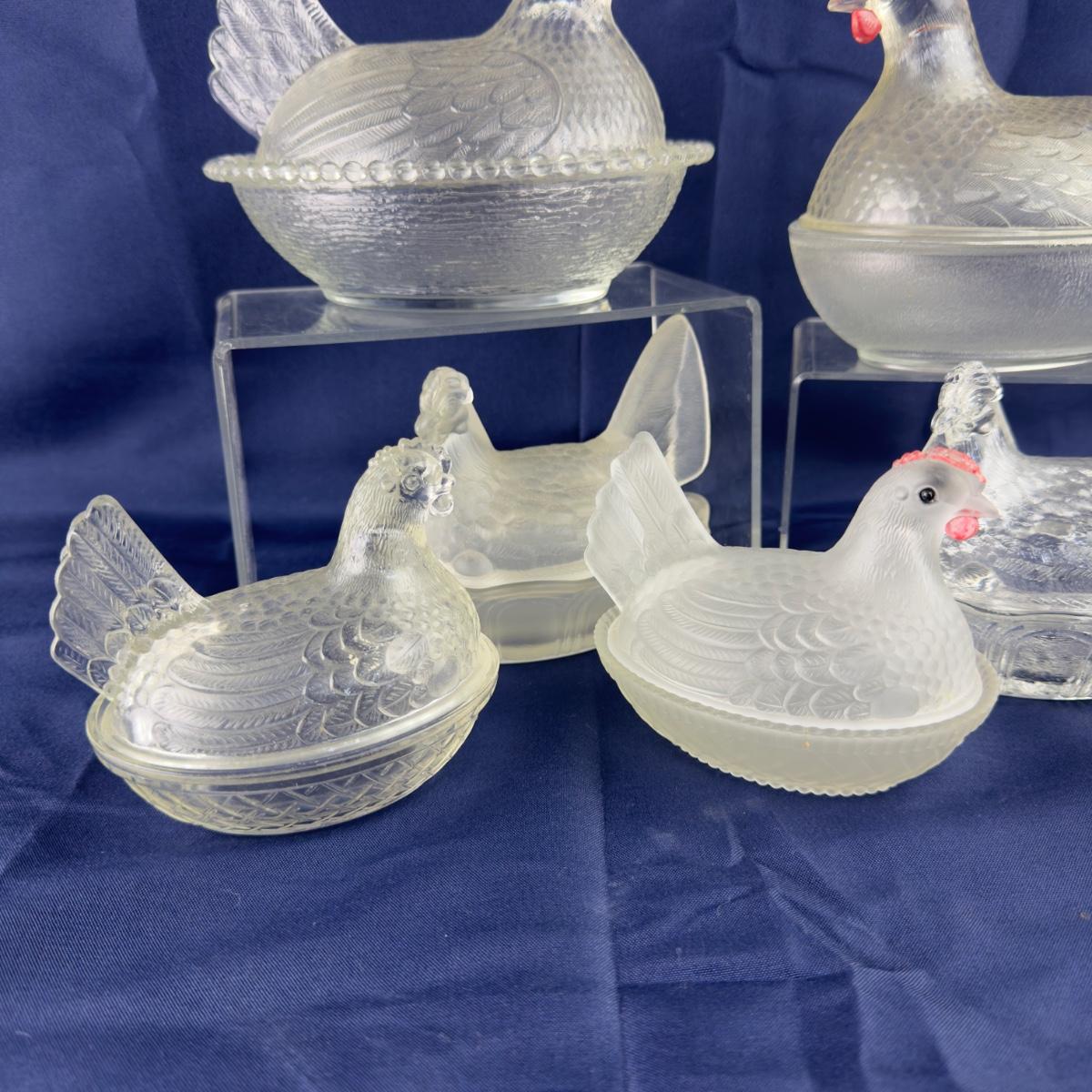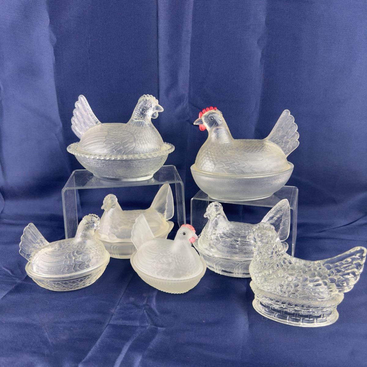 841 Lot of Six Covered Glass Rooster/Hen Dishes