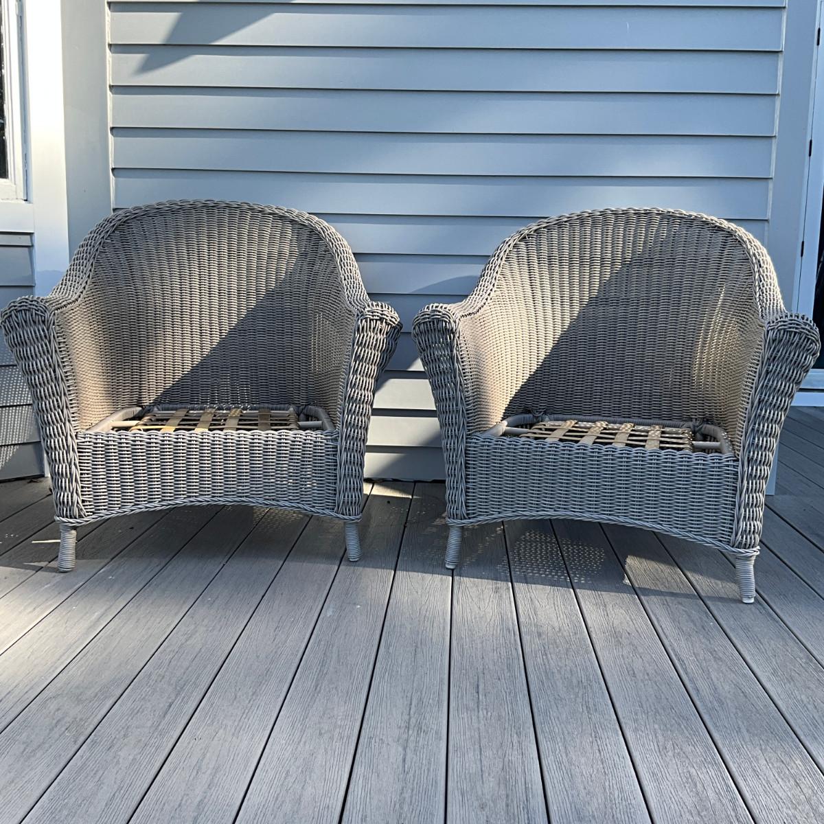 841 Pair Of Frontgate Composite Wicker Outdoor Lounge Chairs