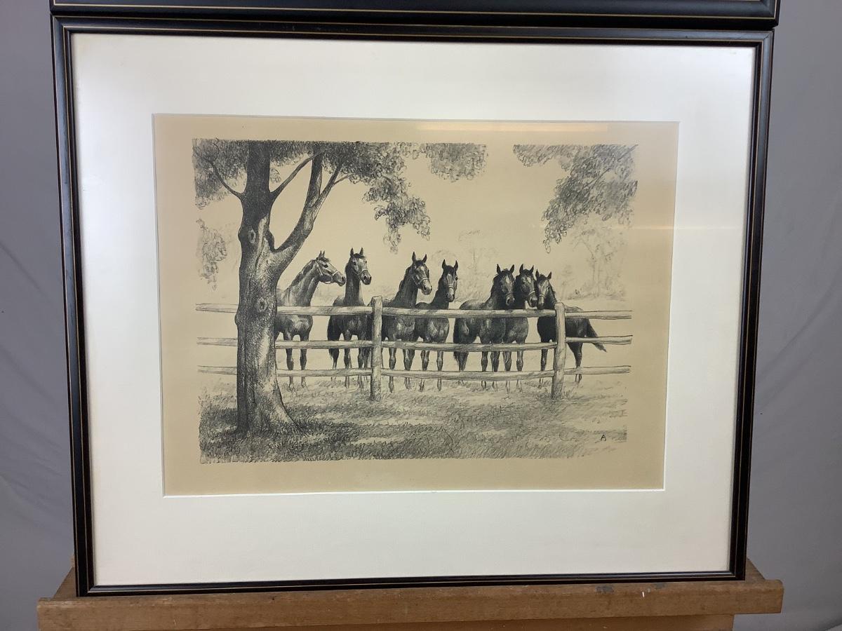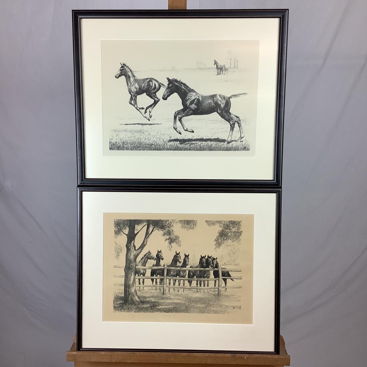 842  Two Clarence William Anderson Prints Horses by Fence & Pony Prints