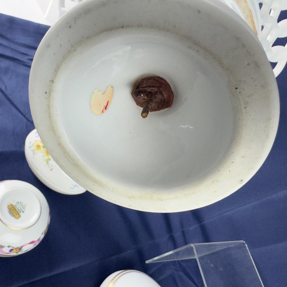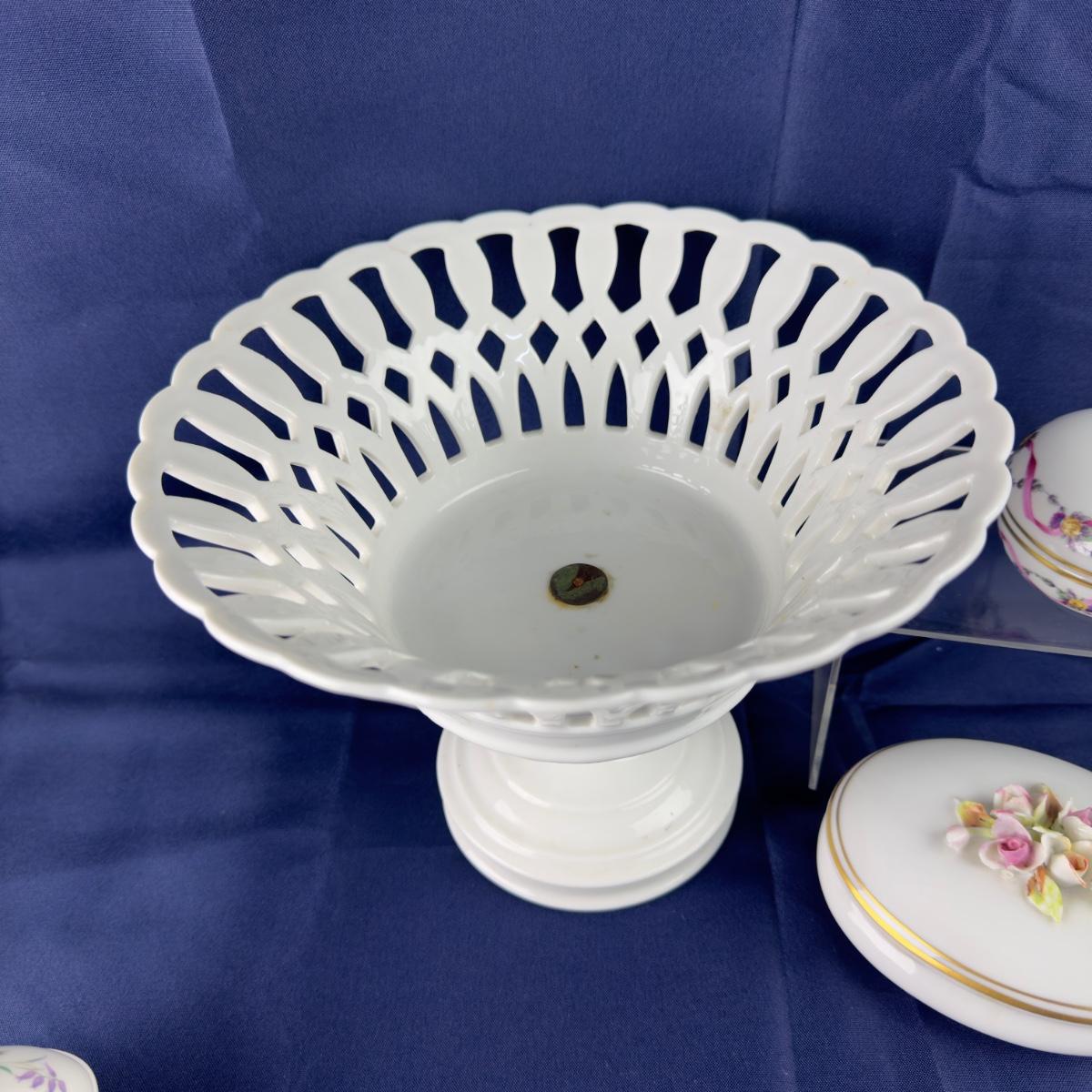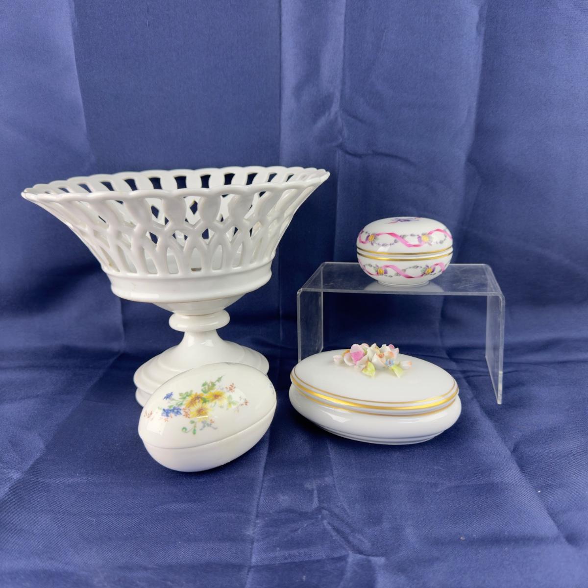 842 White Porcelain Reticulated Compote With Covered Porcelain Egg Boxes