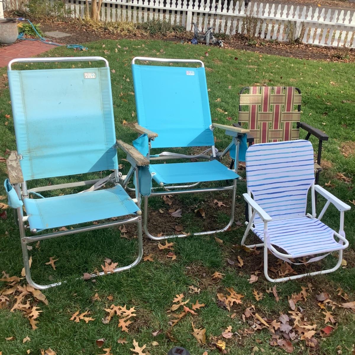 3 Rio Beach Chairs with one childs beach folding chairs