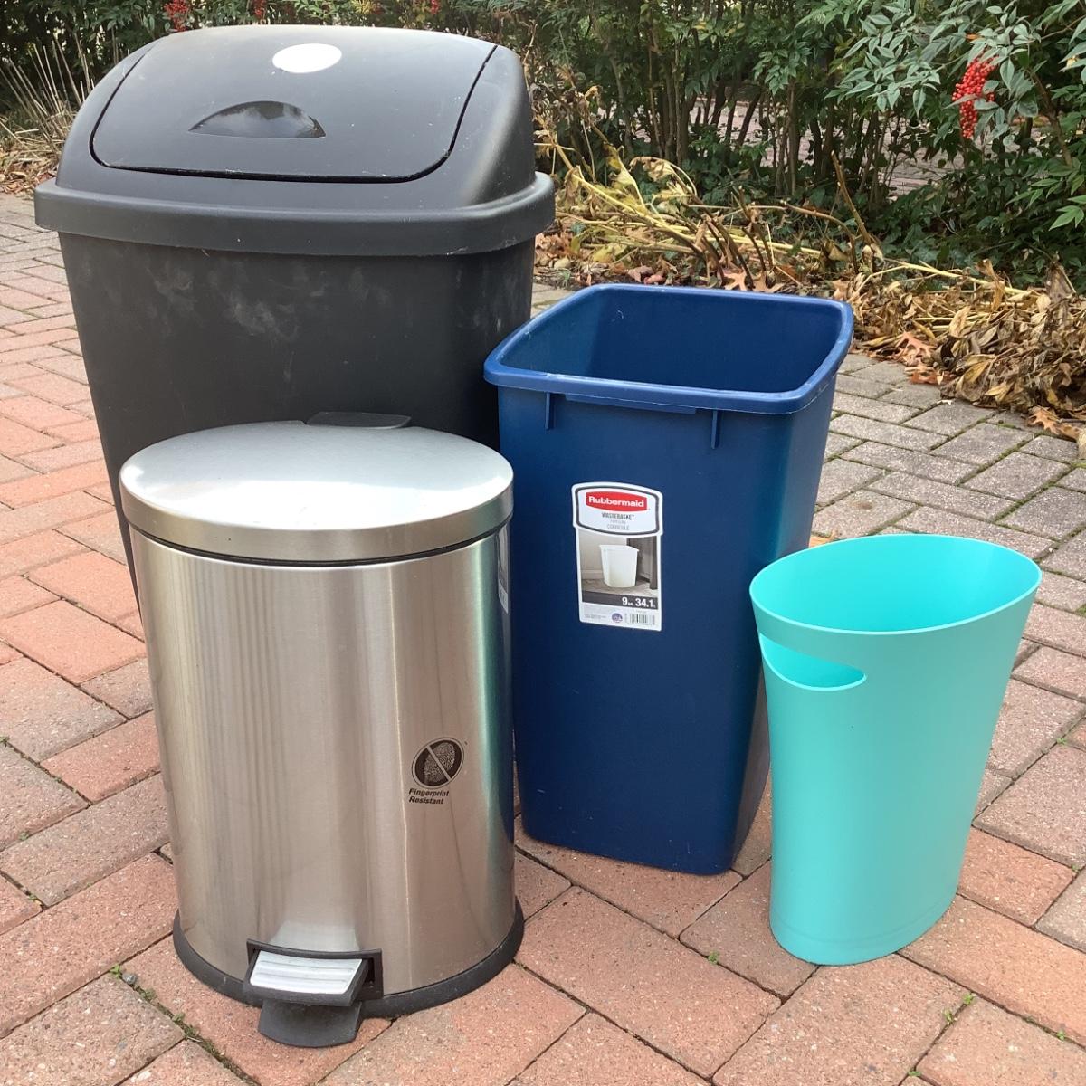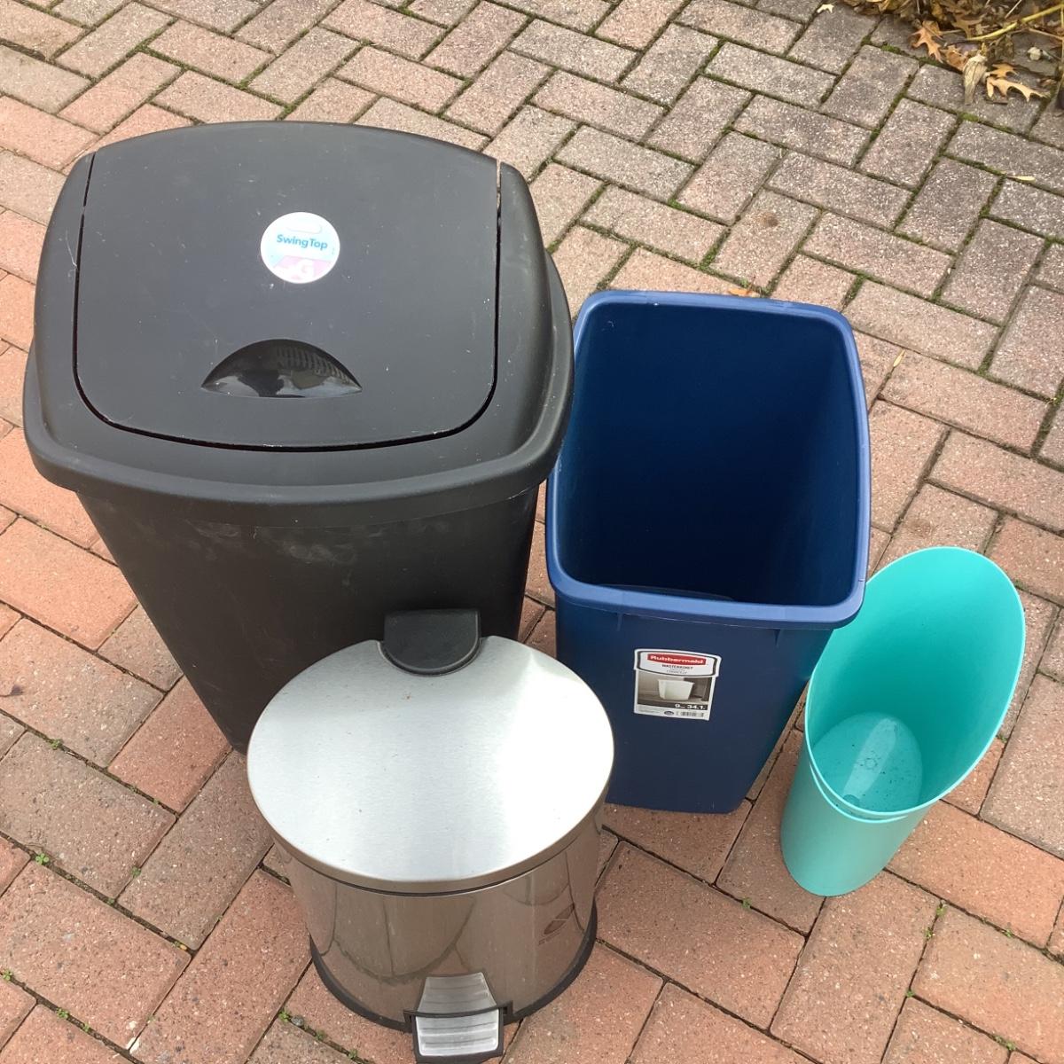 8458 Lot of Rubbermaid and Stainless Step Trash Cans