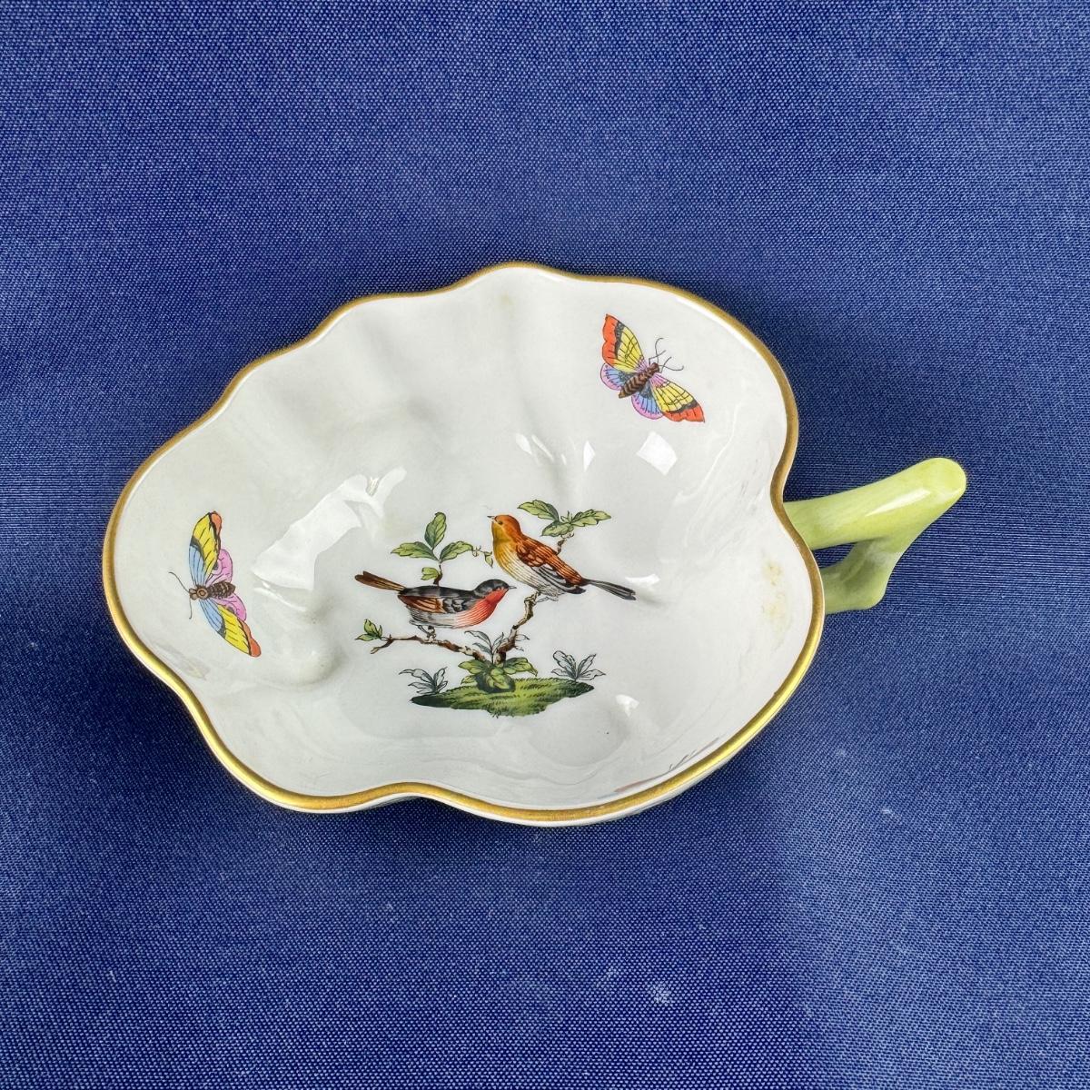 847 Herend Rothschild Bird & Insect Leaf Dish