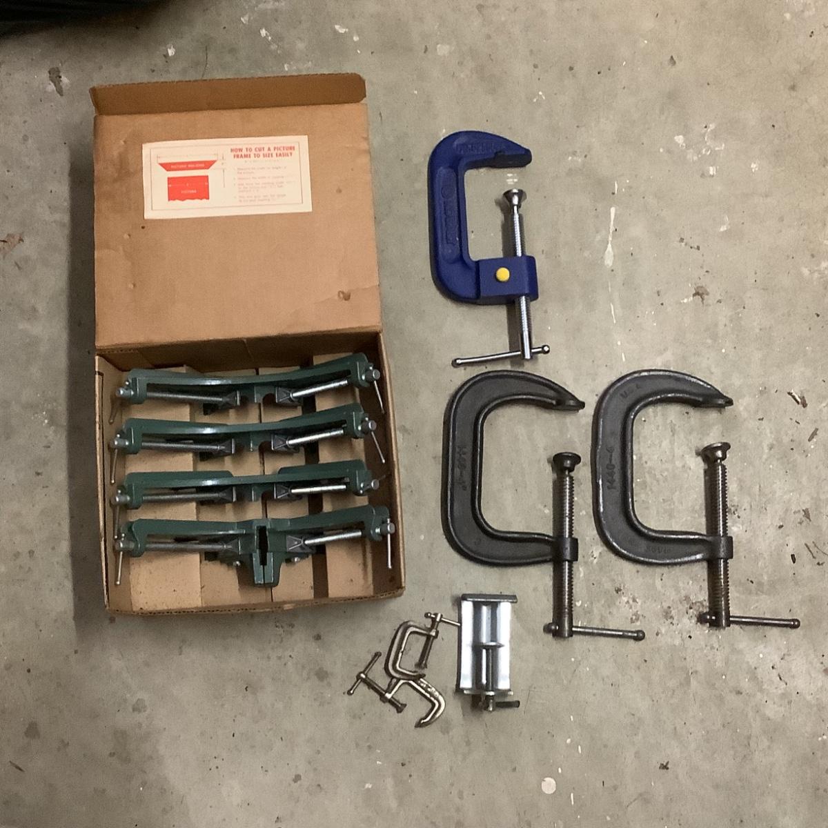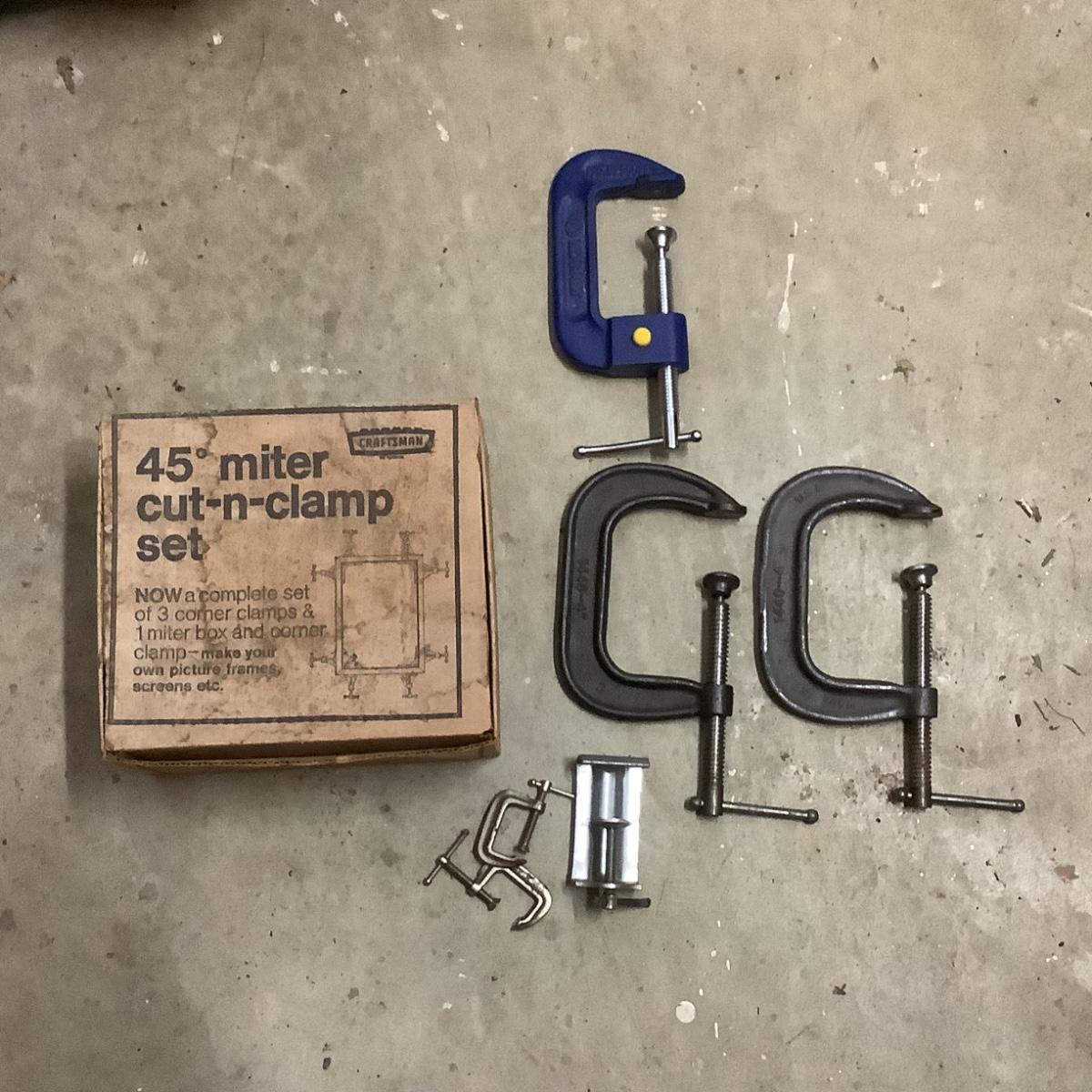 Cut and clamp set of 4 with 3 large c clamps and smaller ones