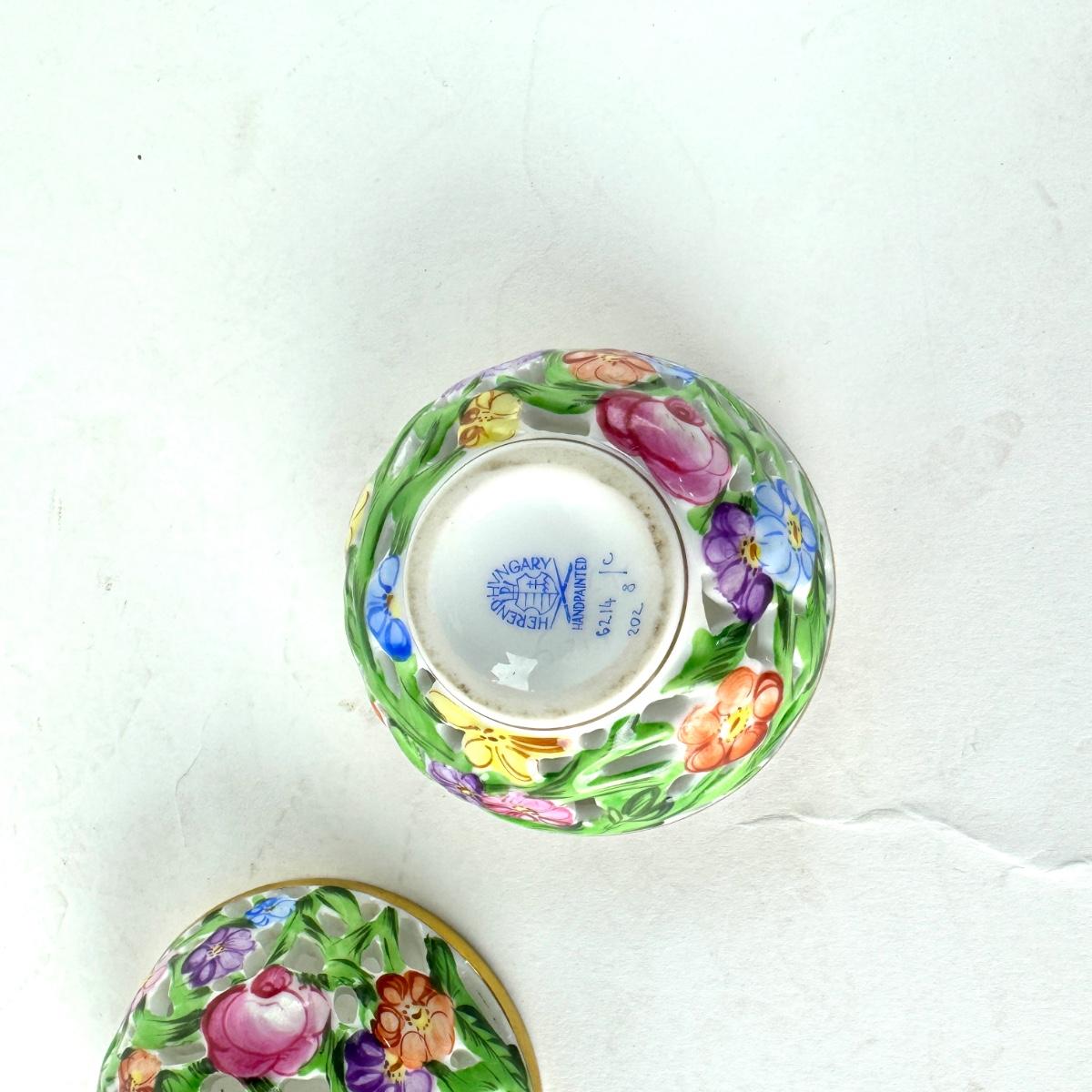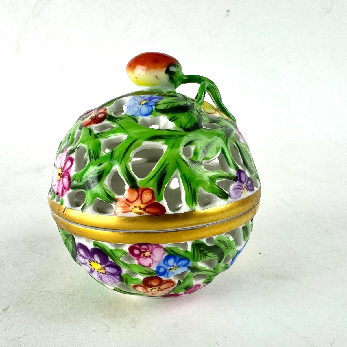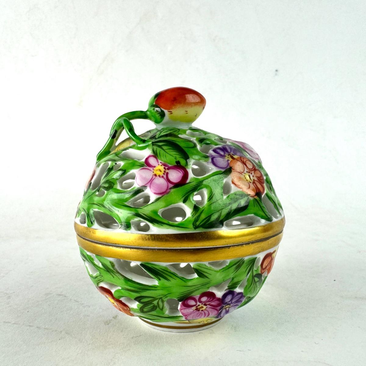 848 Herend Porcelain Reticulated Bonbonniere Floral Motif