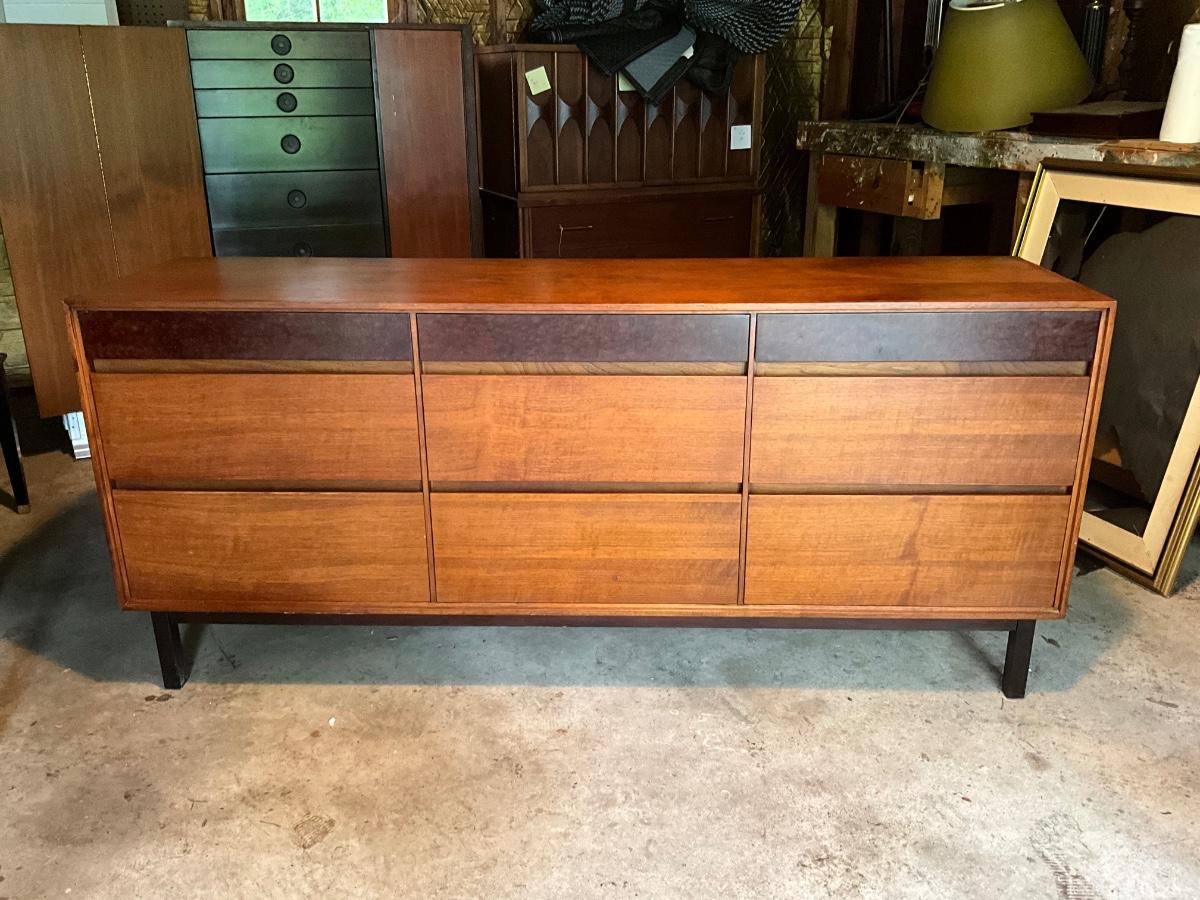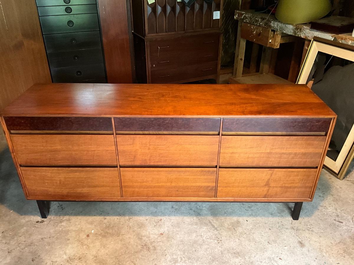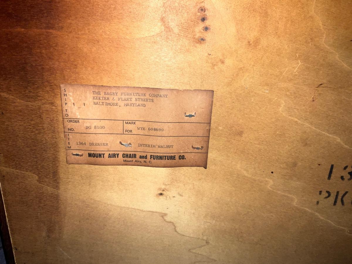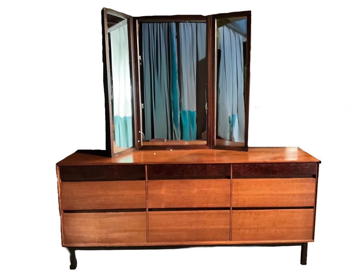 848 Mid Century Modern Mt. Airy Walnut Dresser with Matching Wall Mirror