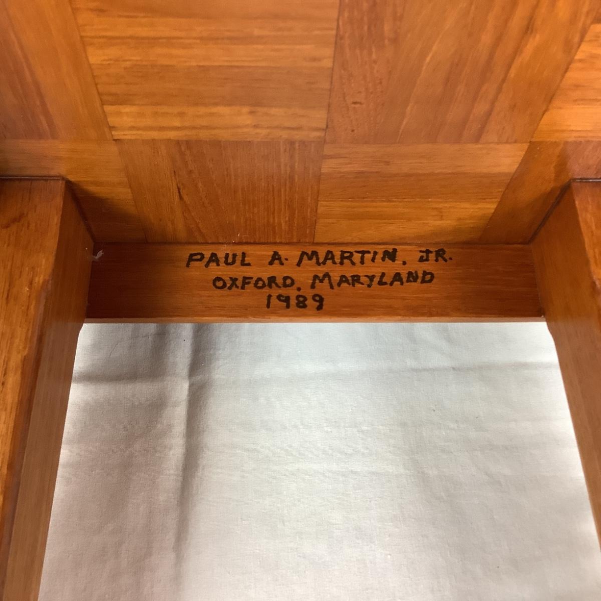 849 1989 Handmade Teak Table by Paul Martin Jr. Oxford, Md