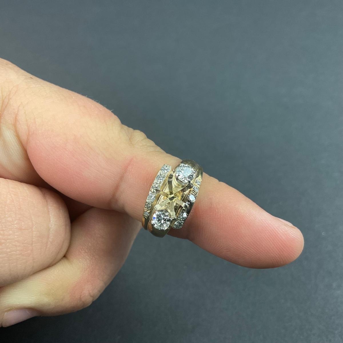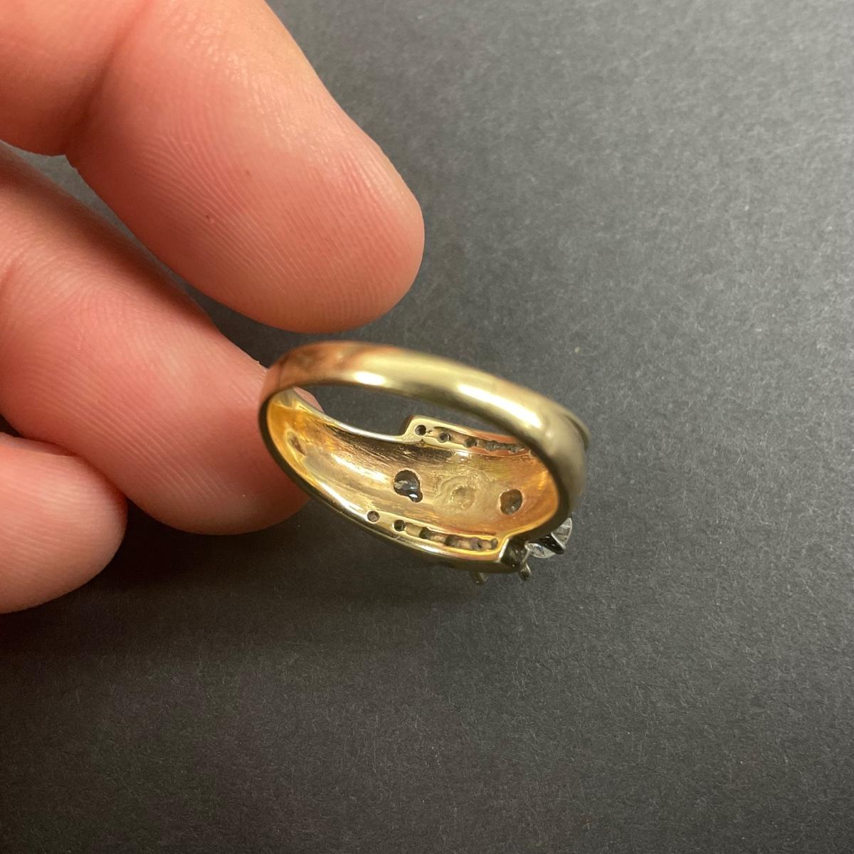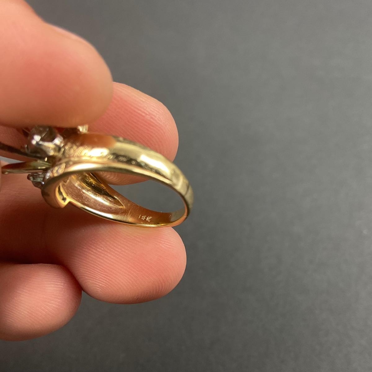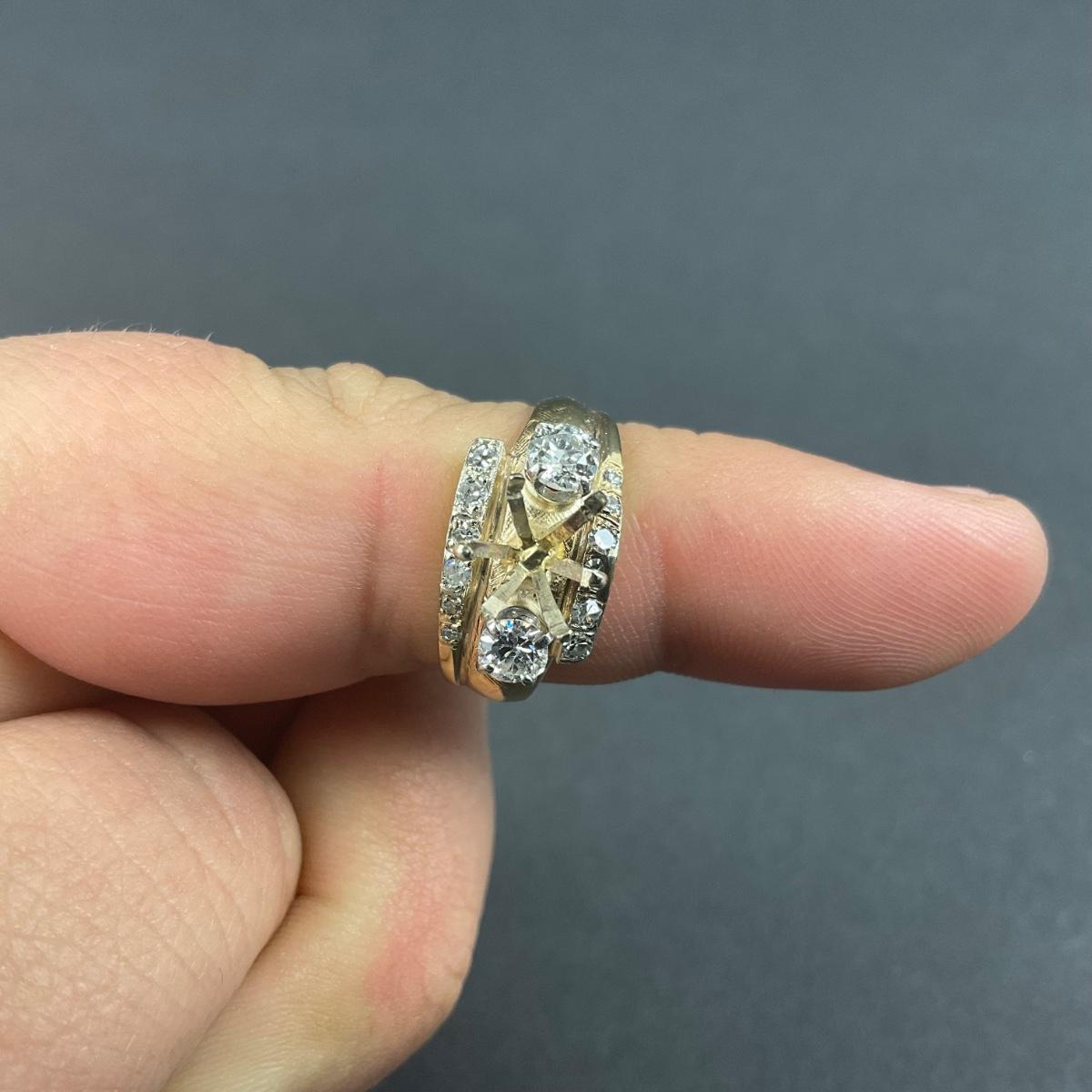 One vintage 14K yellow gold marked and diamond (Tested) ring. This piece is missing the center stone but has two 1/4 carat (Tested) diamonds and twelve smaller diamonds (Tested). This pieces total weight is 3.15 DWT. This ring is size 6 1/2. Please see photos for details and condition. Any condition statement is given as a courtesy to a client, is an opinion, and should not be treated as a statement of fact. Reference to condition written, oral or within a condition report shall not be regarded as a full account of condition and may not include all defects, alterations, or restorations. Absence of a condition report does not imply a lot is flawless or lacking imperfections or damage. Katherine’s Auction & Appraisal Service shall have no responsibility for any error or omission. Returns shall not be accepted on the basis of condition. ::: Shipping is available on this lot. If you require shipping you must let us know at the close of the auction. We will coordinate with you after the item has been won. Shipping fees will include insurance up to or exceeding the value of all items being mailed. If you have any questions regarding this lot please contact the auctioneer either via this website, by direct email or by phone. PICK UP TIMES and other important information can be found in the TERMS and DESCRIPTION of the auction. Please take a look for pertinent information. Thanks!