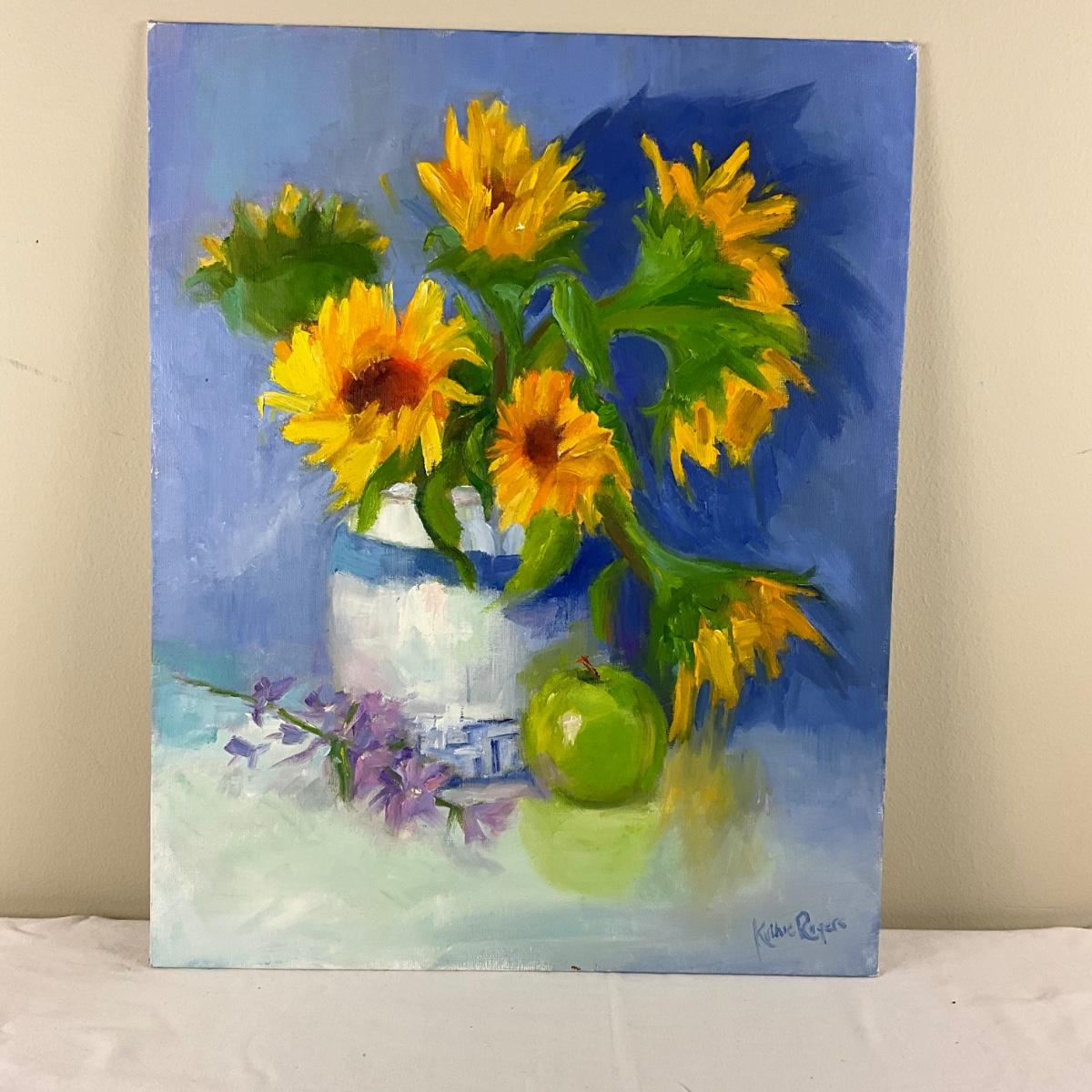 85 Original Acrylic Sunflower Still LIfe Painting by Kathie Rogers