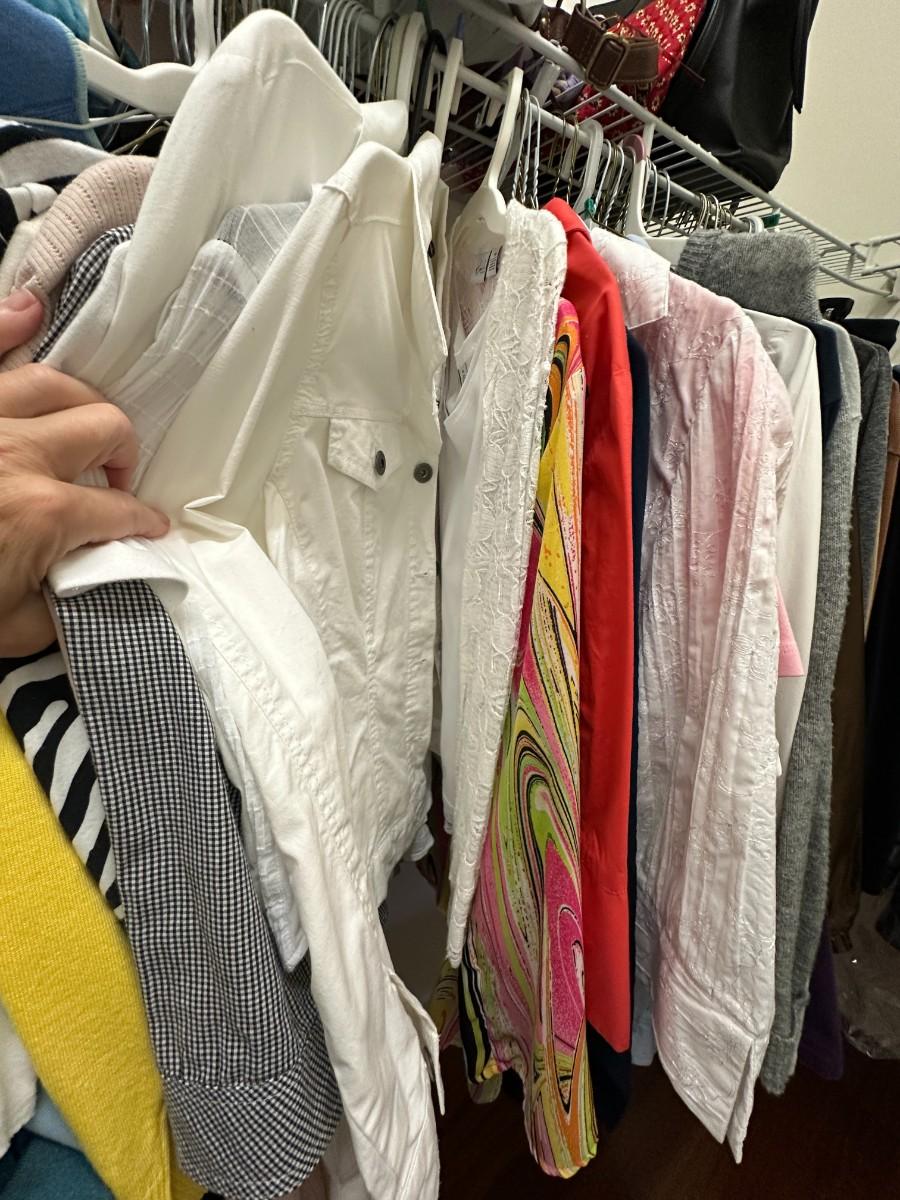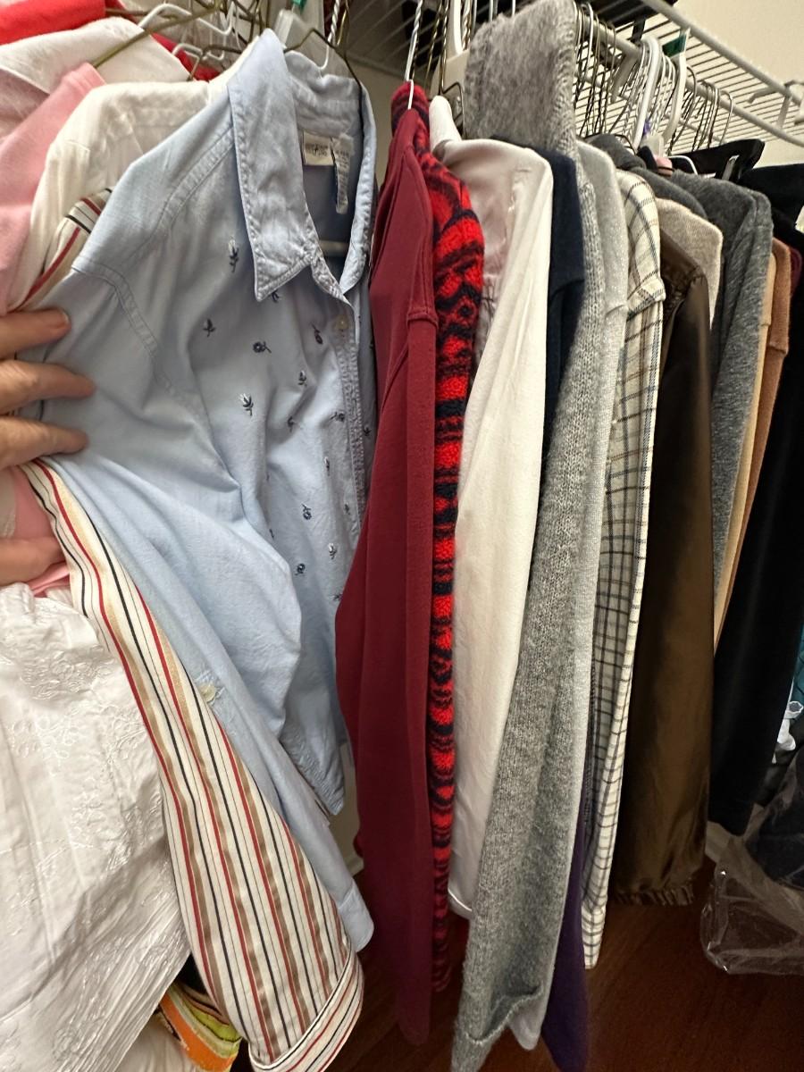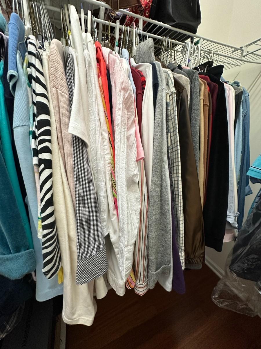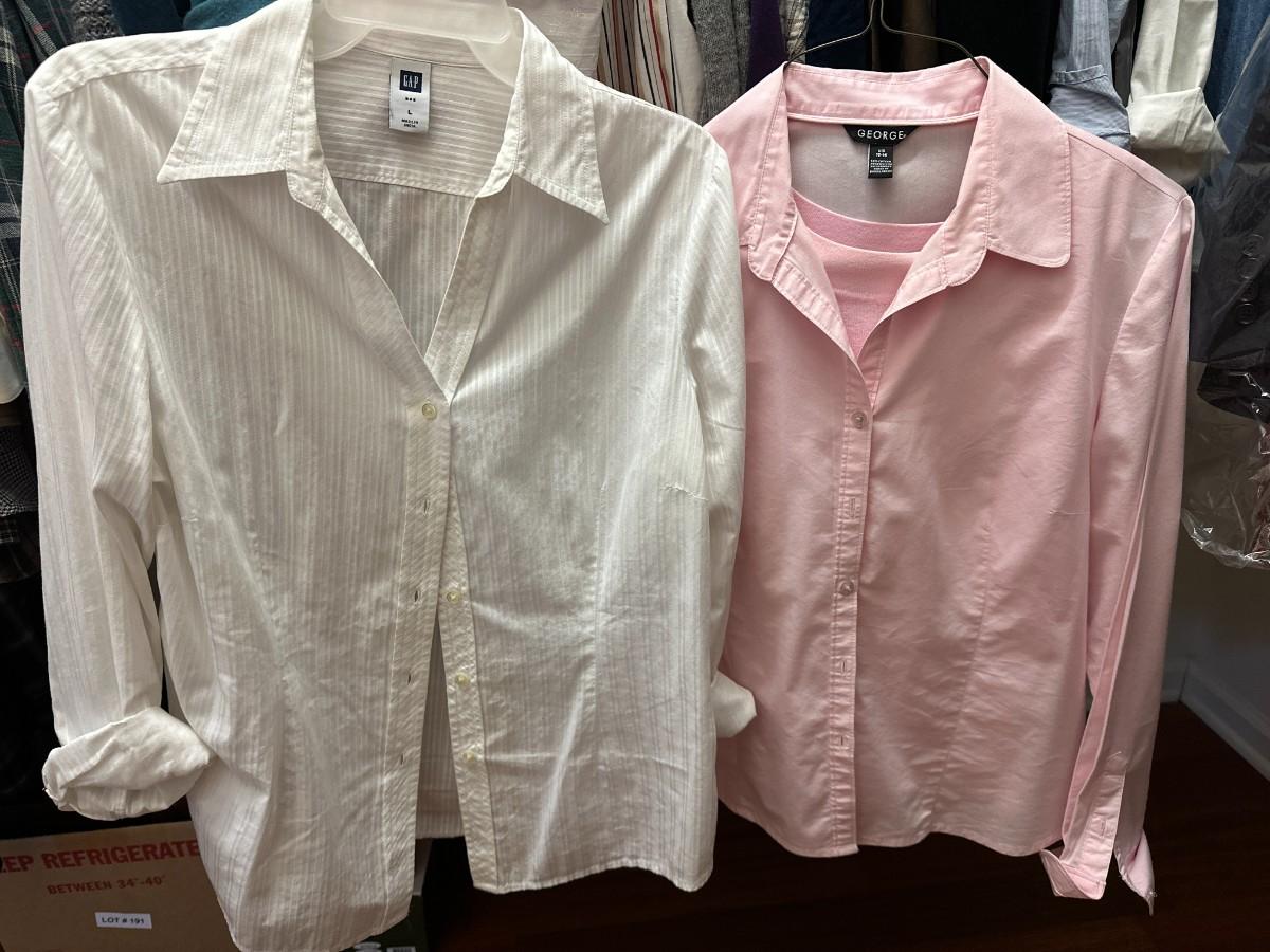 85 Piece Ladies Mixed Tops Lot, Medium & Large, Some brands include Merona, LLBean, Jones New York, Gap, White Stag, George, Kim Rogers, Harve Benard.