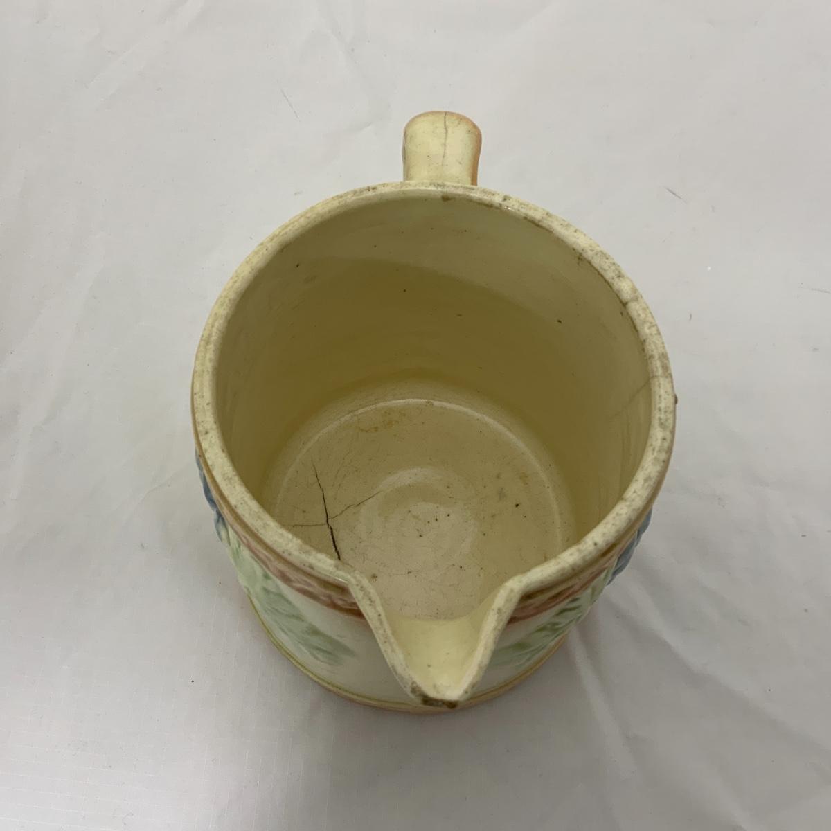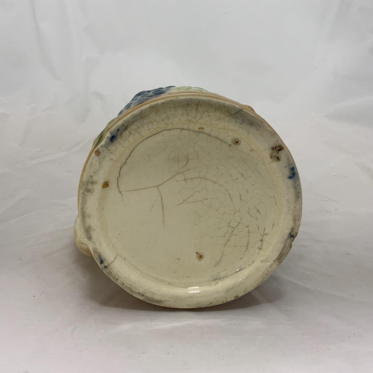 From the Estate of Peter and Alice Radovanovich: Attractive Roseville Grapes Pitcher. There are some cracks on this piece, but if you’re looking for a display item, this is a great one! Good colors throughout. Please see photos for details and condition. ::: Shipping is NOT available on this lot. If you have any questions regarding this lot please contact the auctioneer either via this website, by direct email or by phone. PICK UP TIMES and other important information can be found in the TERMS and DESCRIPTION of the auction. Please take a look for pertinent information. Thanks!