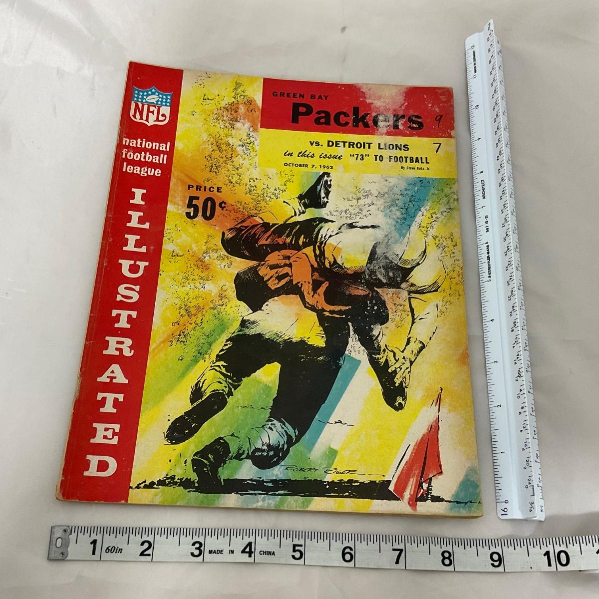 One 1962 Green Bay Packers vs The Lions program. There is some wear and damage. Please see photos for details and condition. ::: Shipping is available on this lot. If you require shipping you must let us know at the close of the auction. We will coordinate with you after the item has been won. Shipping fees will include insurance up to or exceeding the value of all items being mailed. If you have any questions regarding this lot please contact the auctioneer either via this website, by direct email or by phone. PICK UP TIMES and other important information can be found in the TERMS and DESCRIPTION of the auction. Please take a look for pertinent information. Thanks!
