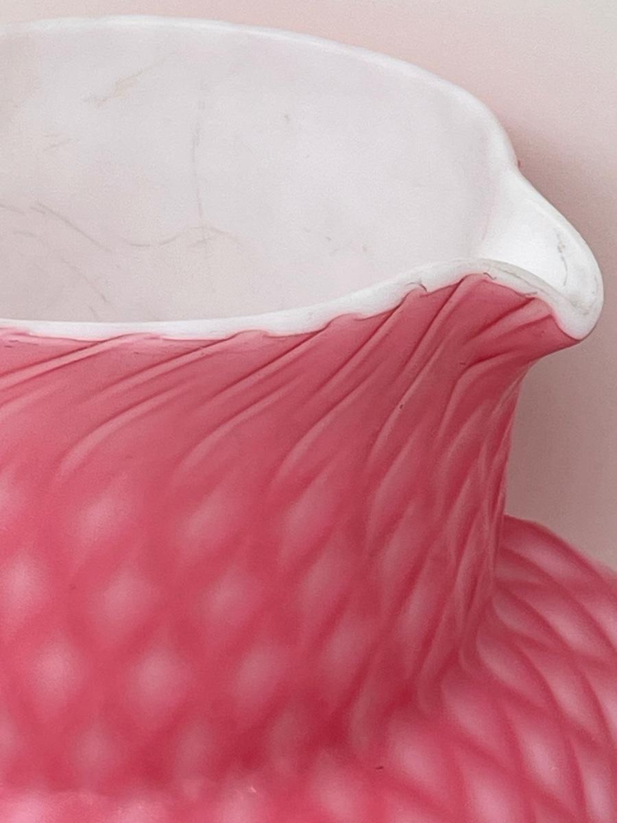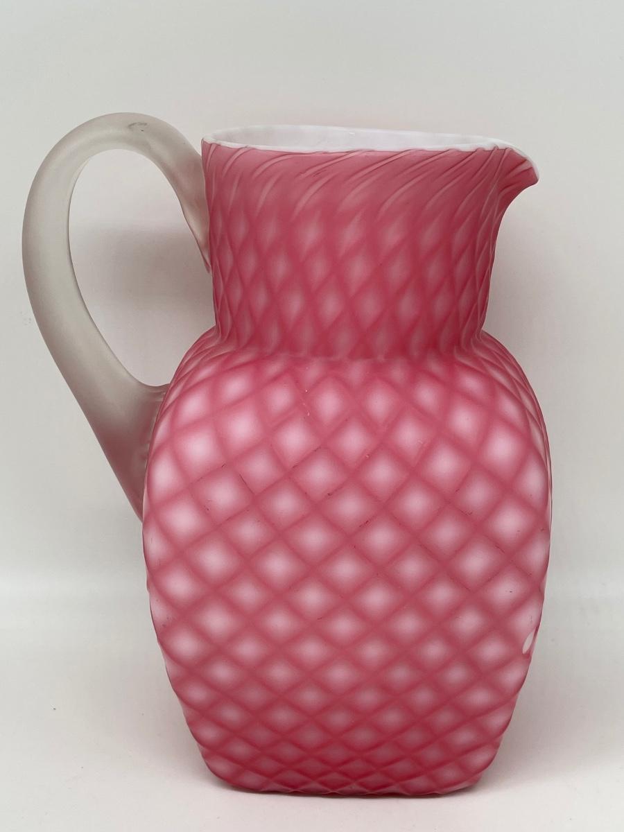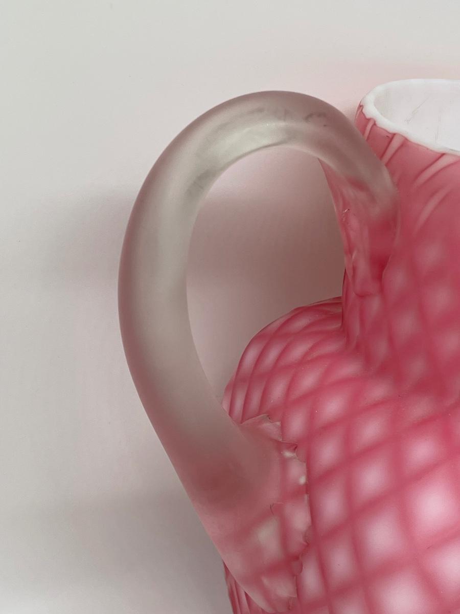 Stunning pink phoenix diamond pitcher. One chip on the outer edge (see pics) as well as a dark marking in the glass; one white mark (not a chip) on the bottom