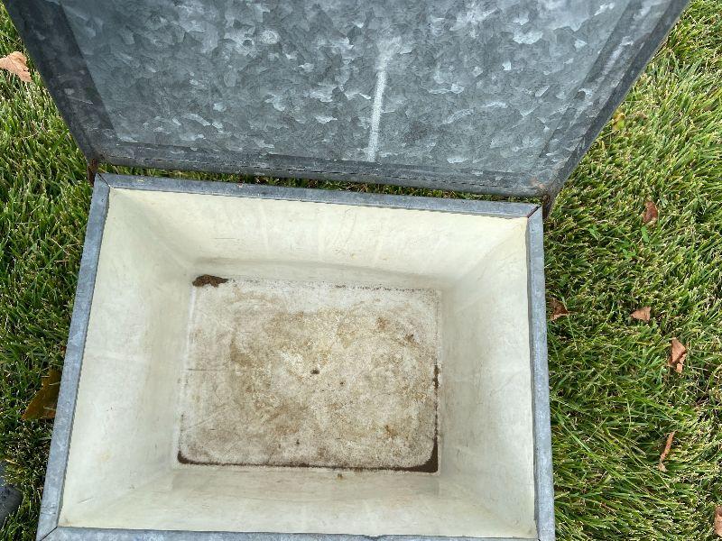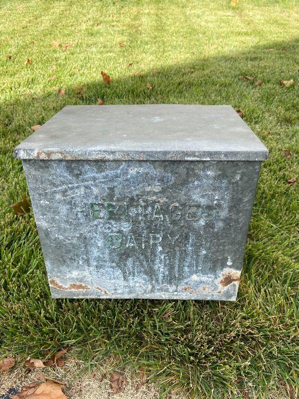 Glavaniz metal milk cooler. *Please review all photos for condition and contents of lot.